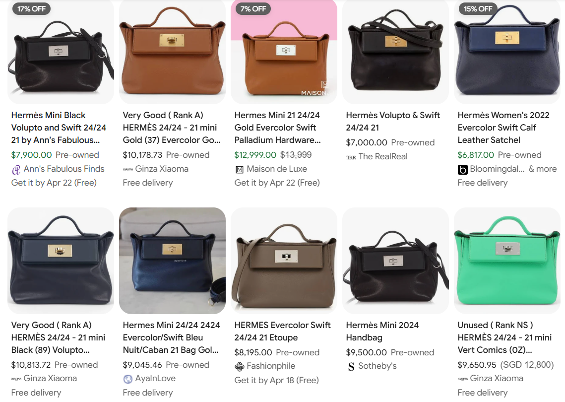 On the secondhand market, a Mini 21 in regular leather usually starts around $8,000, and can go all the way up to $13,000 depending on the condition and color. The 29 can fetch up to $15,400 in some cases.