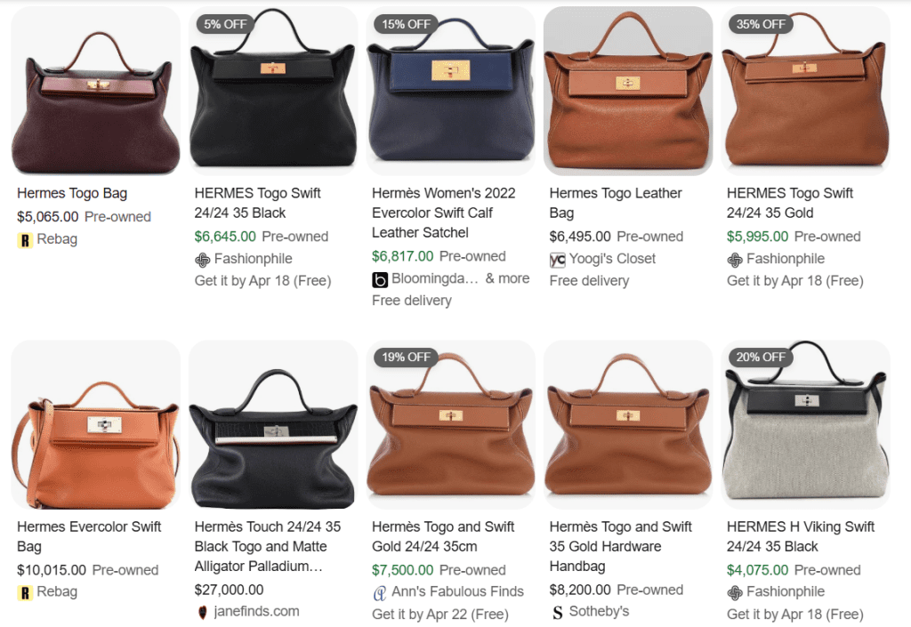 As for the 35, it’s generally less in demand, so the price is a bit lower—unless it’s made with exotic leather like alligator, in which case it can still hit $27,000.