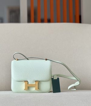 The Constance comes in leathers like Epsom, Swift, Box calf and exotic skins like alligator and lizard. The “H” clasp can be in palladium, gold or rose gold, and some versions have enamel or exotic skin inlays.