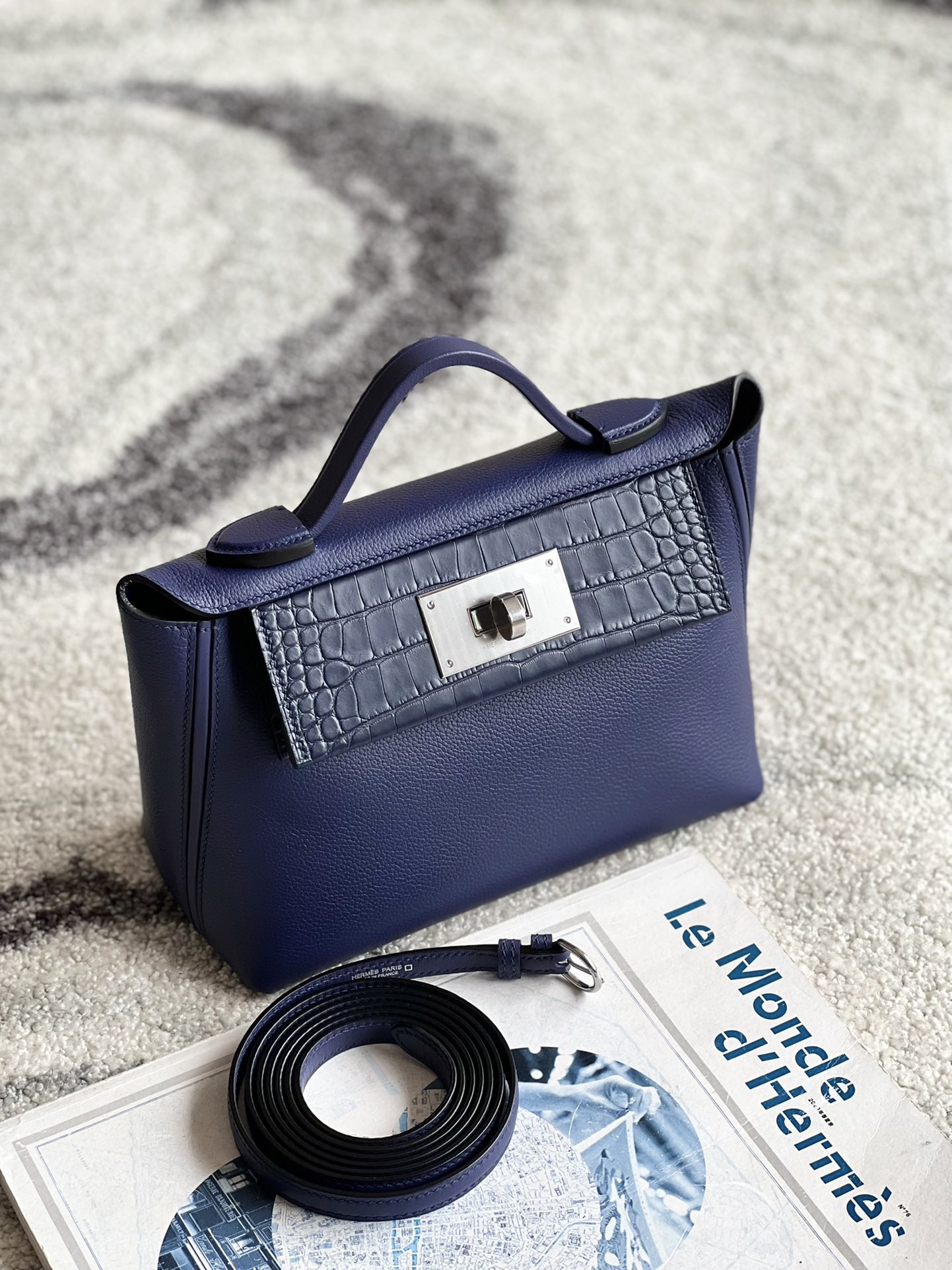 2424 Mini 21 Alligator,Evercolor And Swift Blue Saphir (73) Palladium Hardware