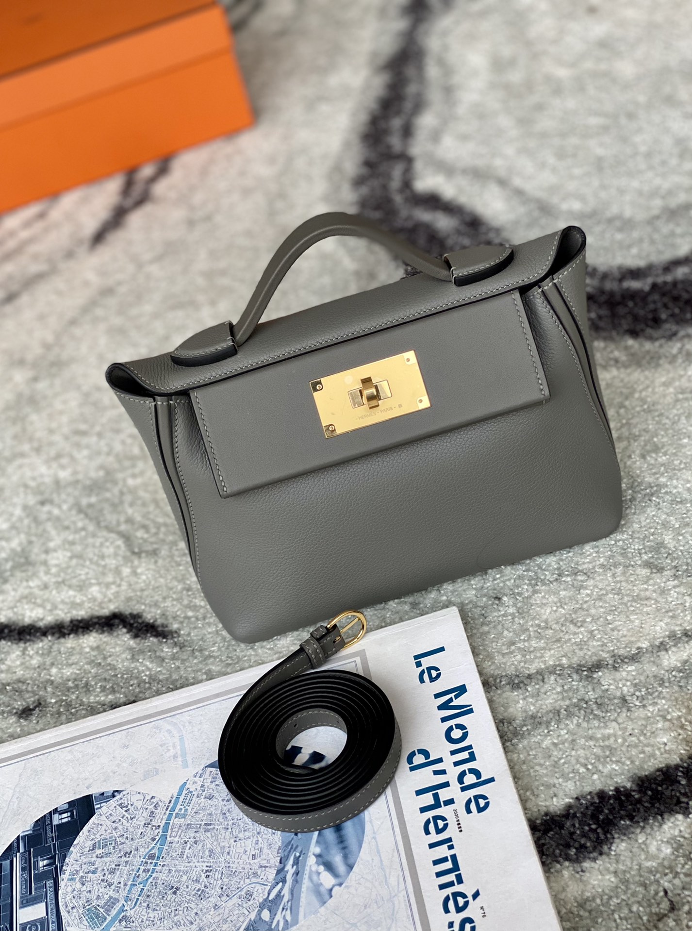 2424 Mini 21 Evercolor And Swift Gris Meyer (0L) Gold Hardware