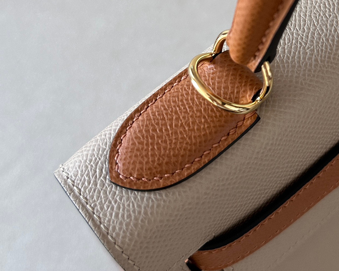 The interior is lined in chèvre leather.