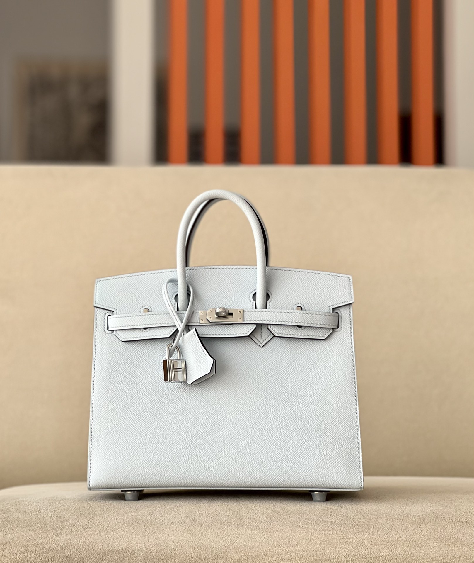 Includes lock, two keys, clochette, clochette dust bag, ribbon, care booklet, raincoat, felt protector, dust bag, and box .