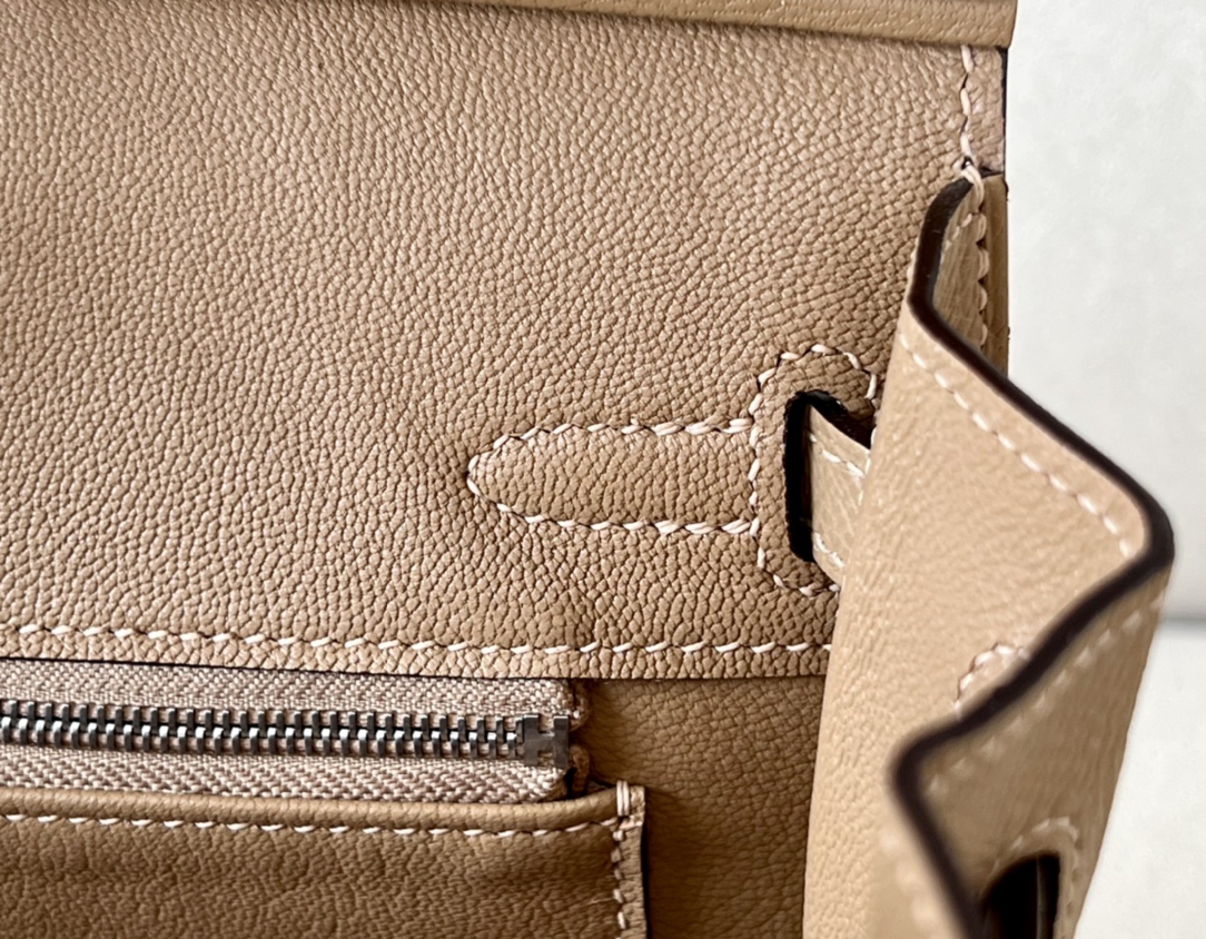 The interior is lined in chèvre leather.