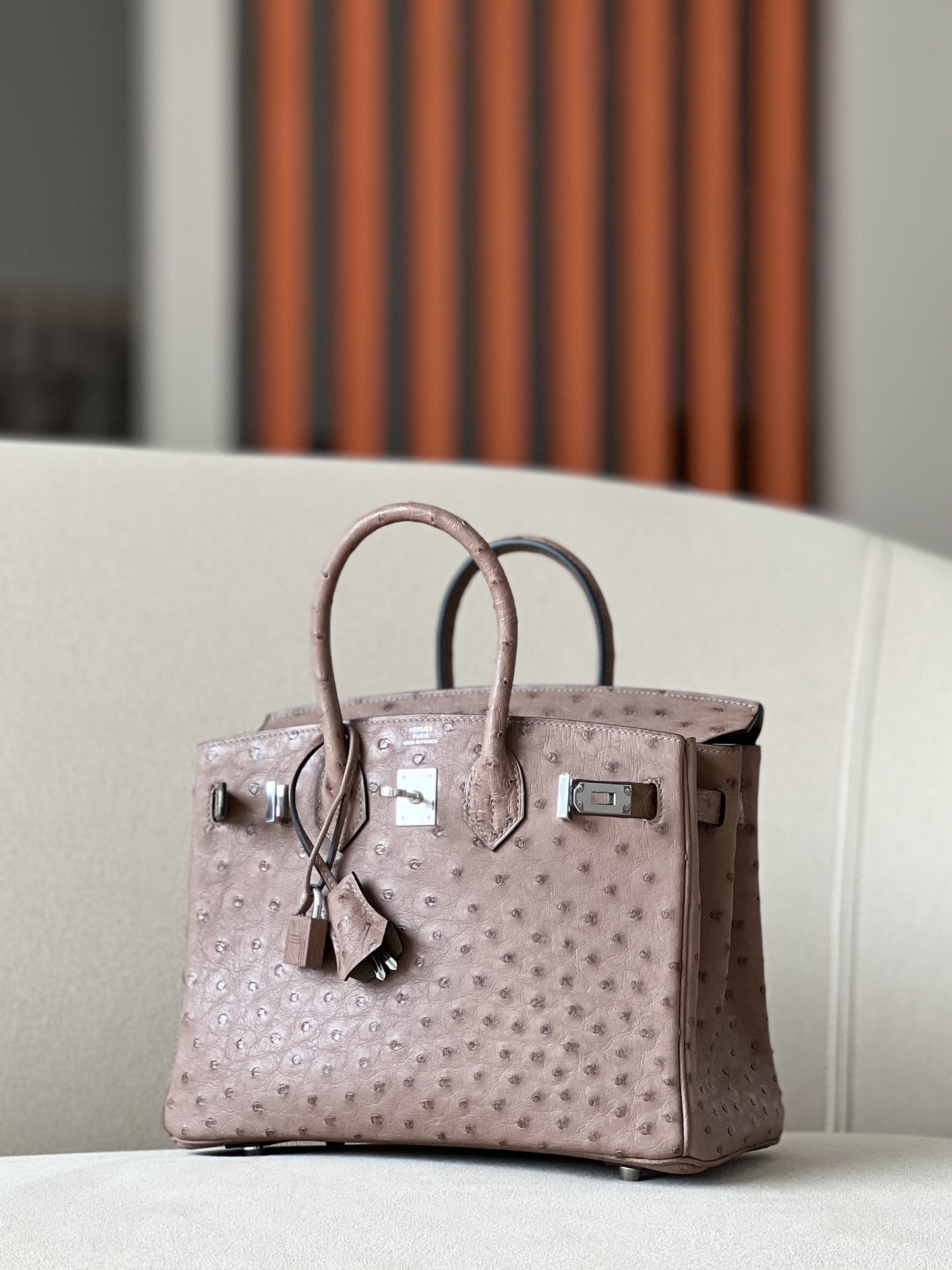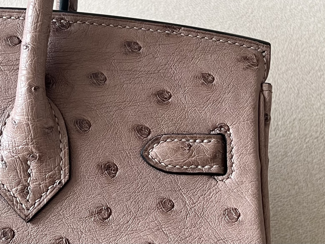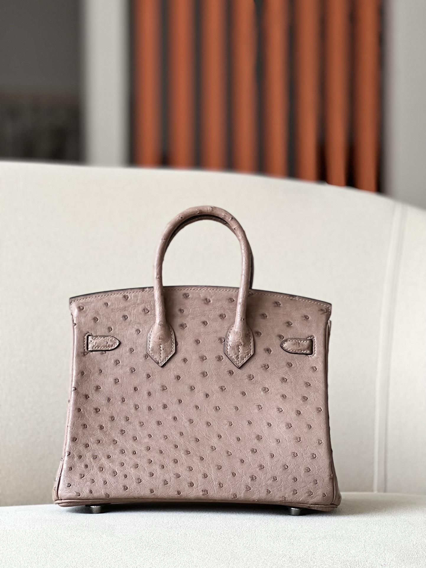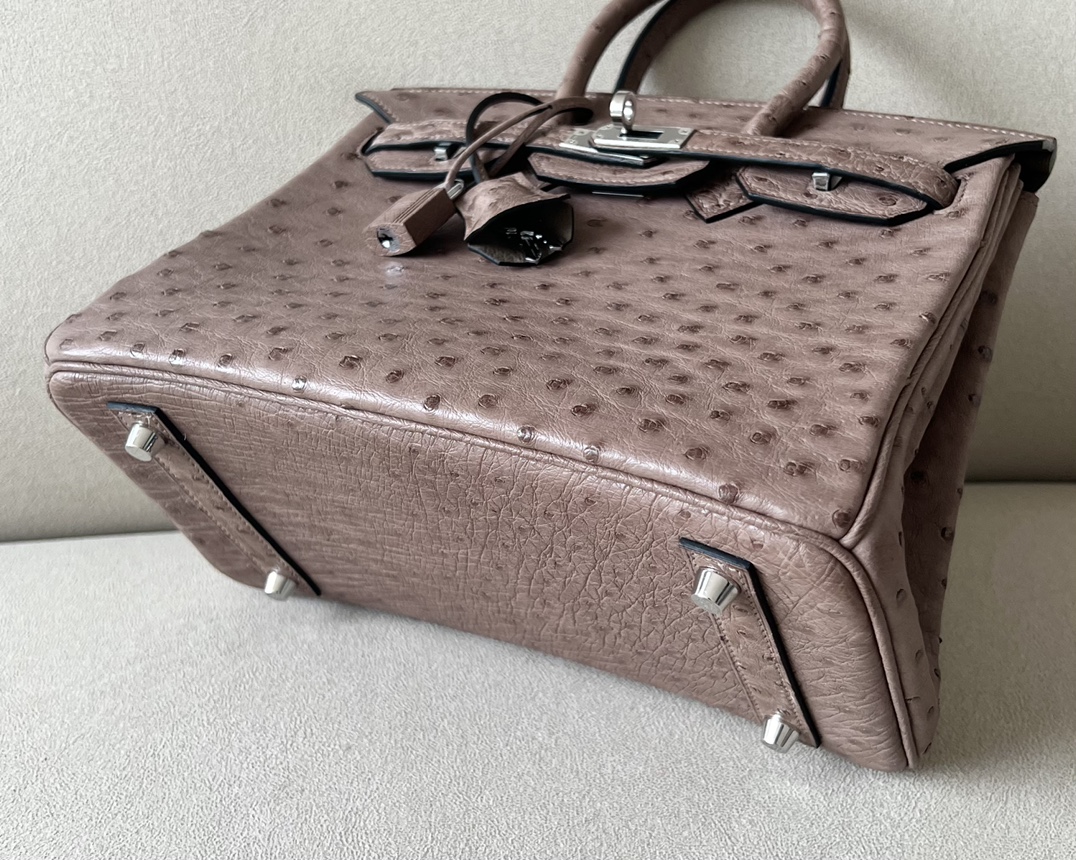 Birkin 25 Ostrich Gris Tourterelle(81) Palladium Hardware