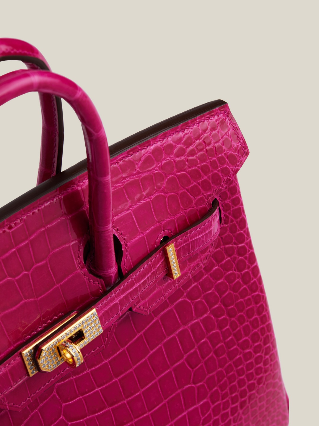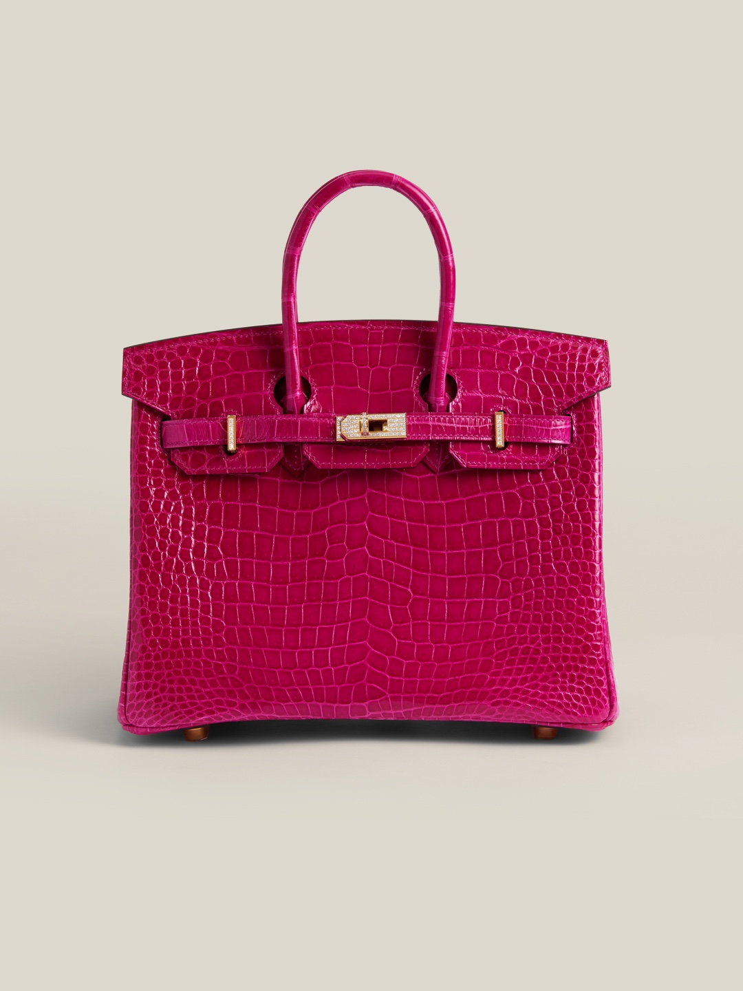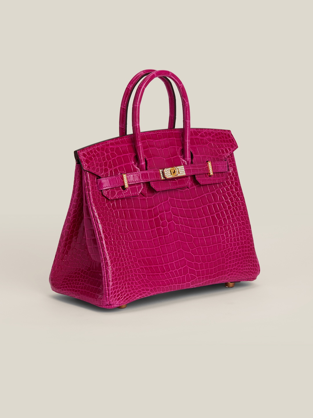 Birkin 25 Shiny Alligator Crocodile Rose Sheherazade Crystal buckle
