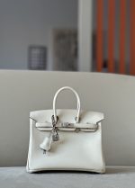 Includes lock, two keys, clochette, clochette dust bag, ribbon, care booklet, raincoat, felt protector, dust bag, and box