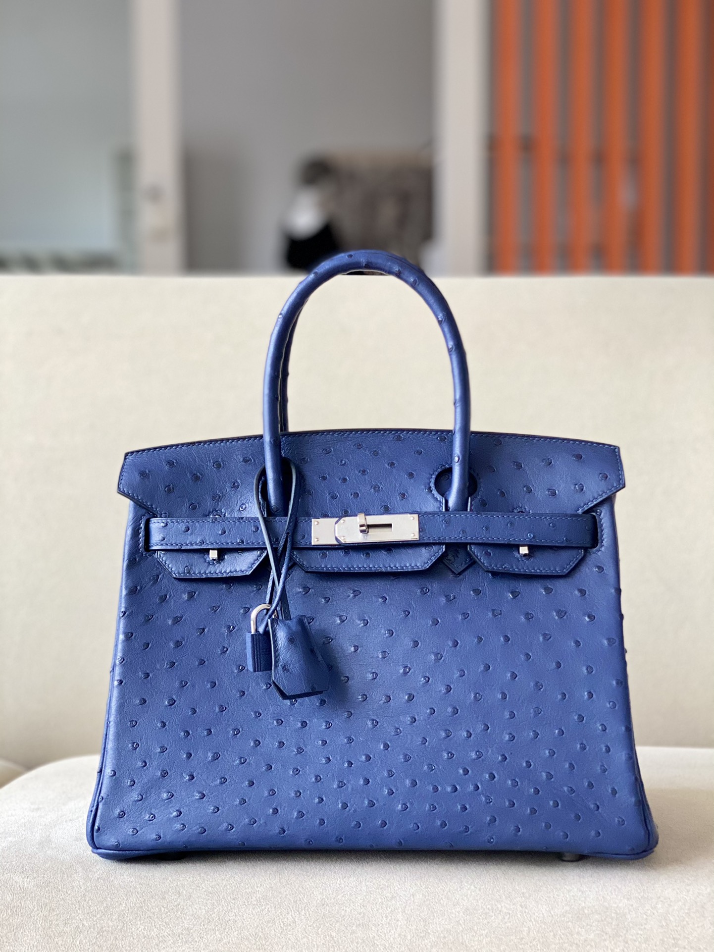 Birkin 30 Ostrich Blue Iris (77) Palladium Hardware