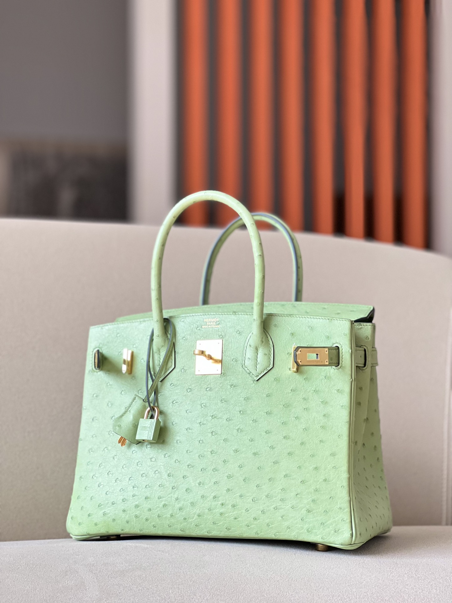 Birkin 30 Ostrich Vert Criquet (3I) Gold Hardware