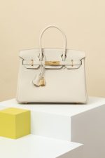 Includes lock, two keys, clochette, clochette dust bag, ribbon, care booklet, raincoat, felt protector, dust bag, and box.