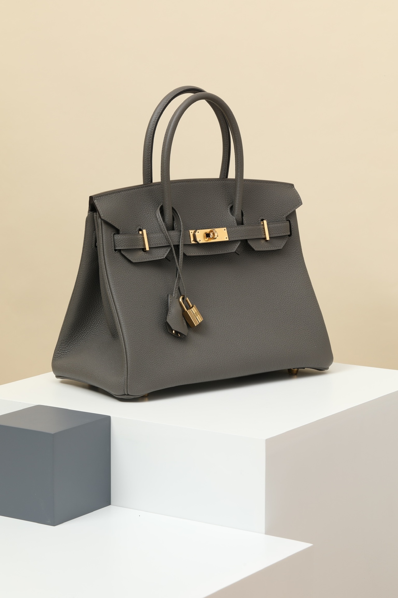Includes lock, two keys, clochette, clochette dust bag, ribbon, care booklet, raincoat, felt protector, dust bag, and box.
