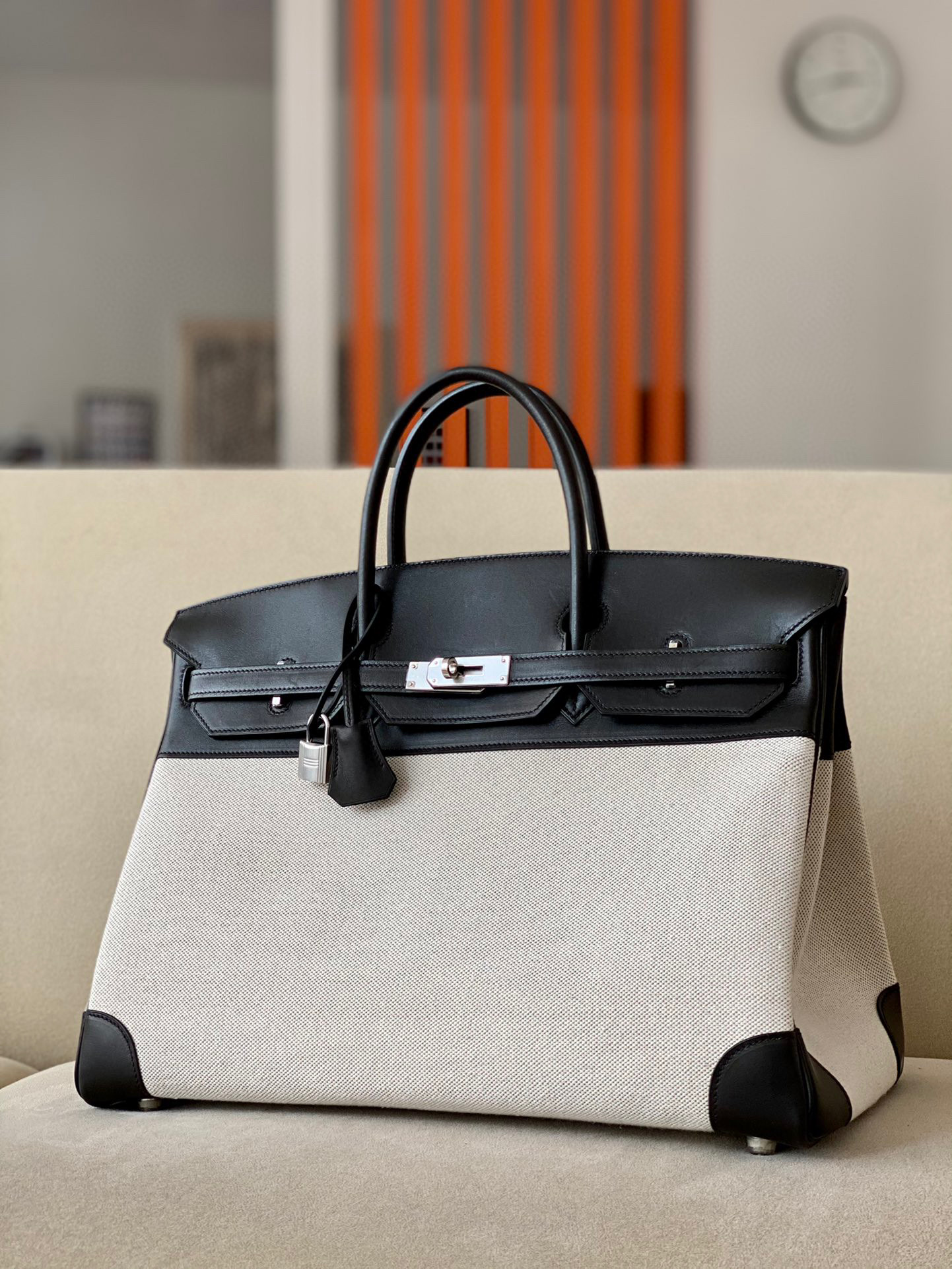 Birkin HSS 40 Barenia and Canvas in Ebene(46) Palladium hardware