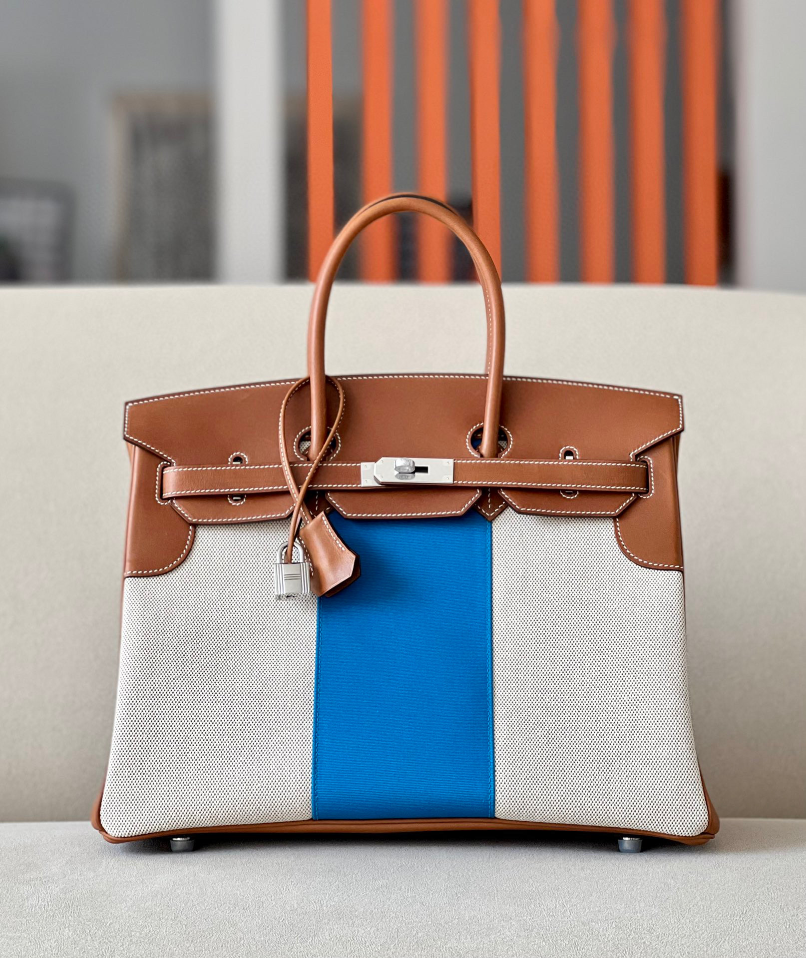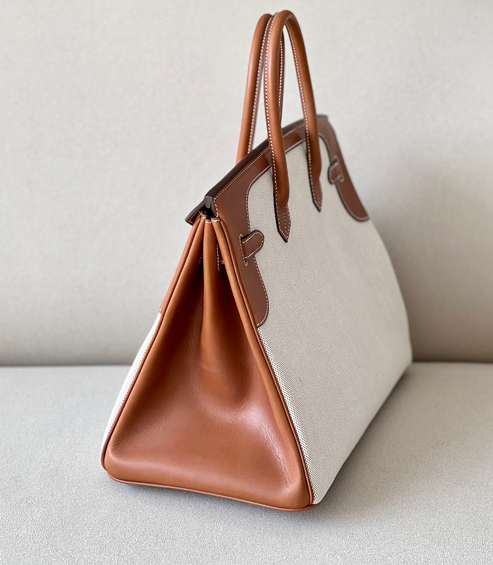 Birkin HSS 35 Barenia and Canvas in Gold(37) Gold hardware