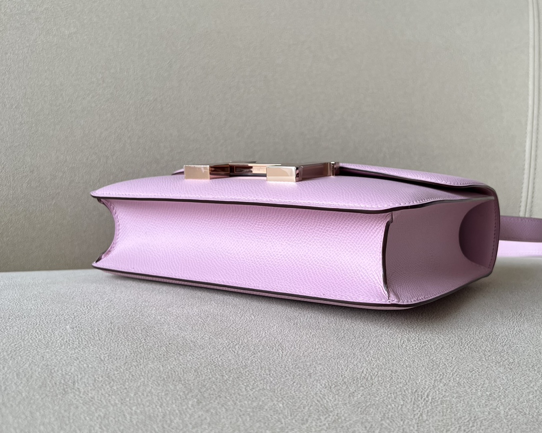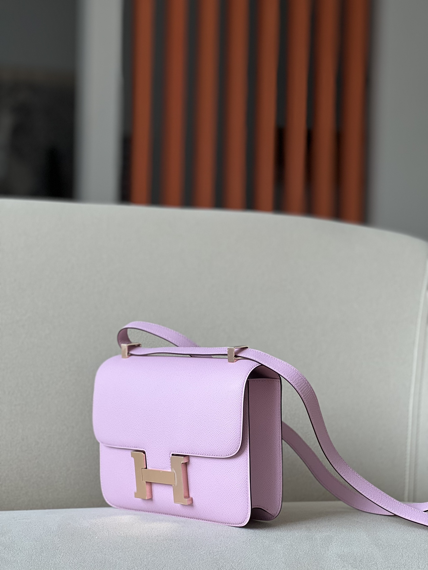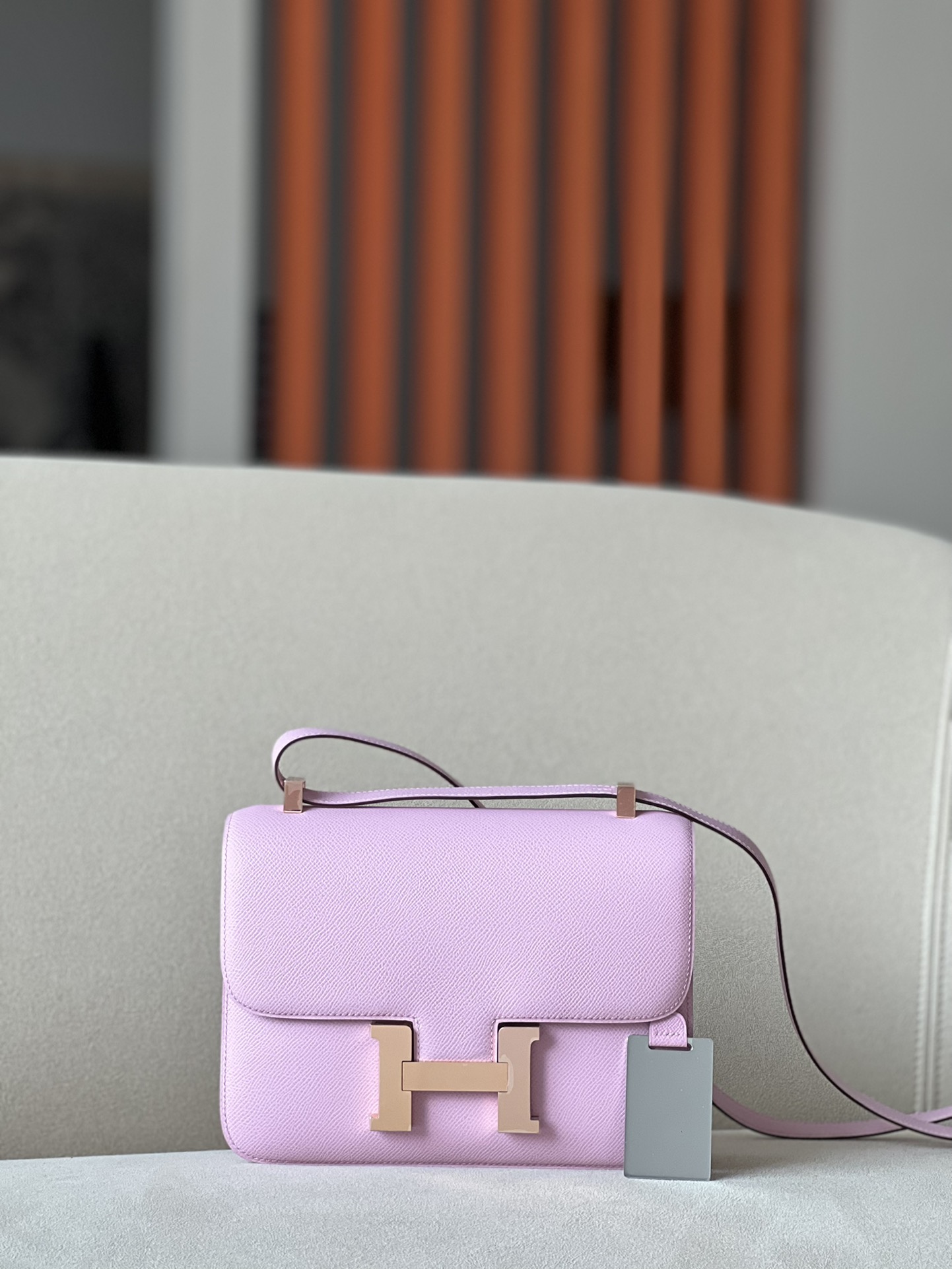 The bag features a long shoulder strap , including an H buckle on the flap.