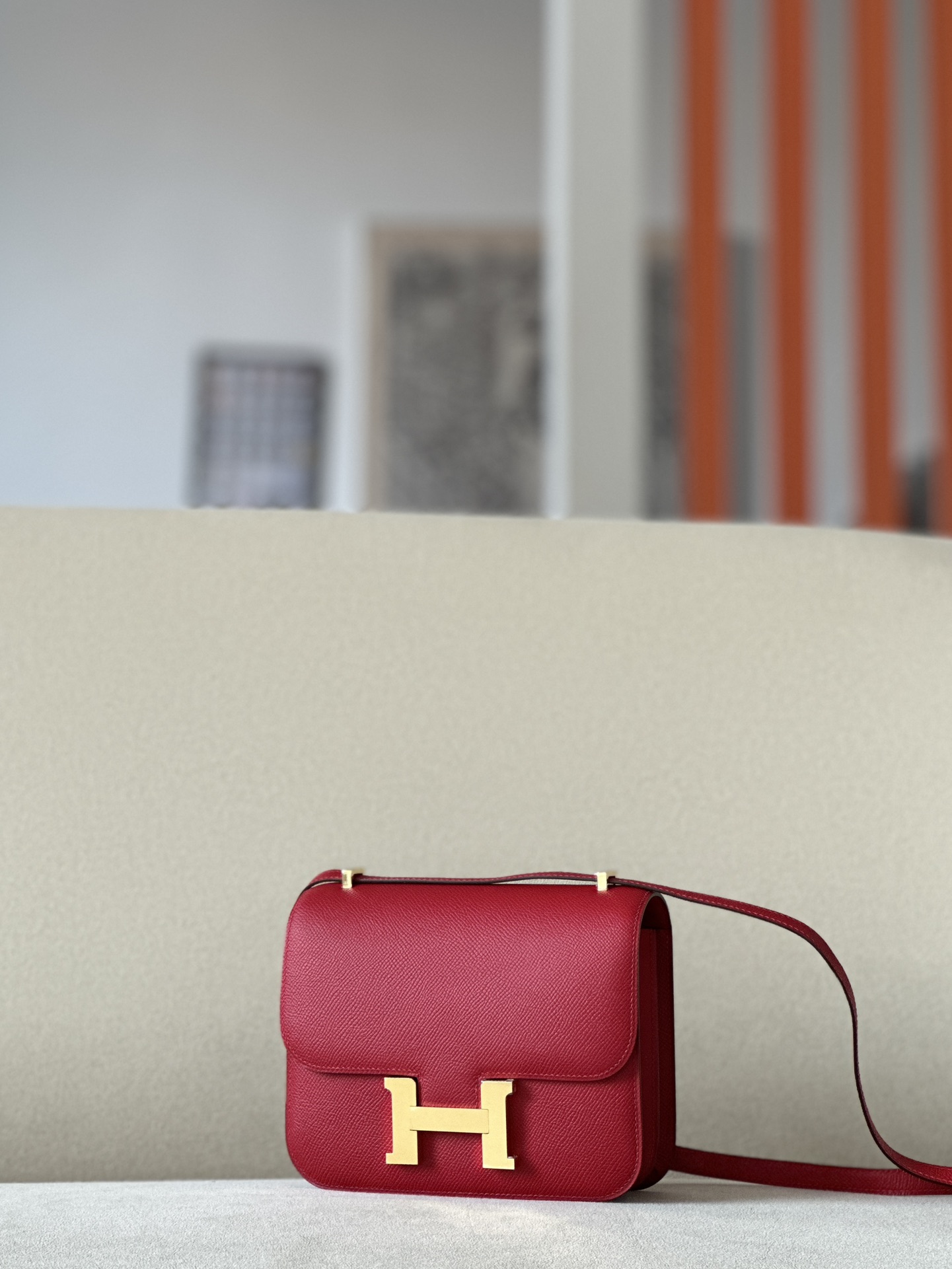 Constance 19 Epsom Rouge Casaque(Q5) Gold Hardware