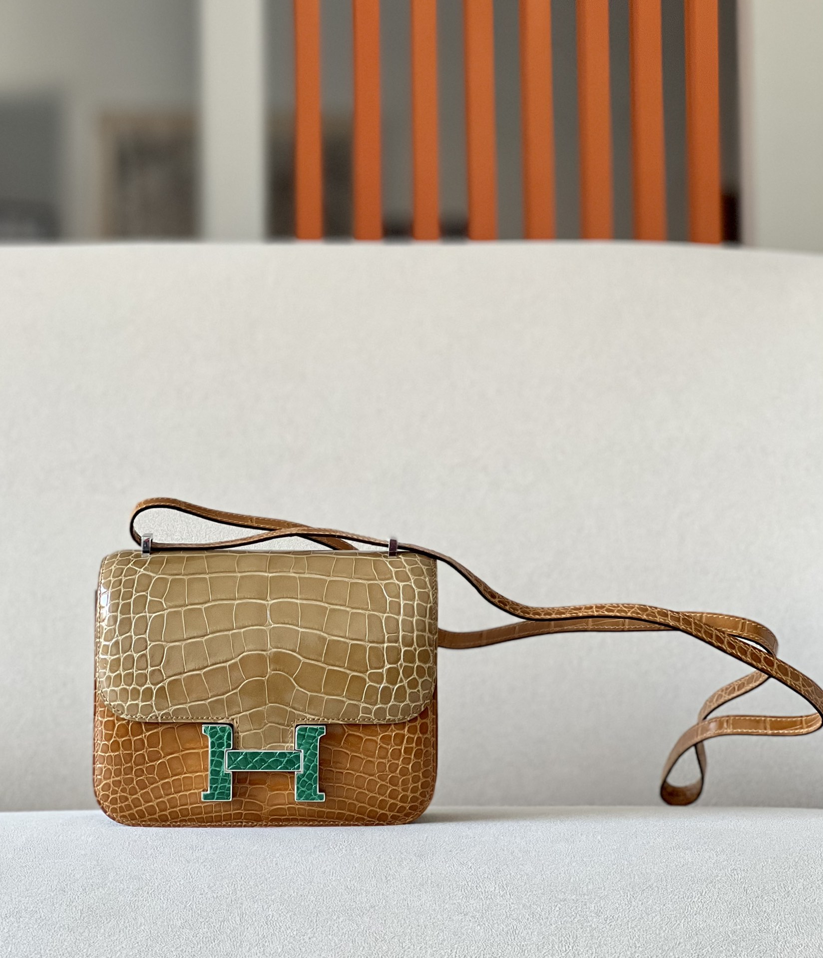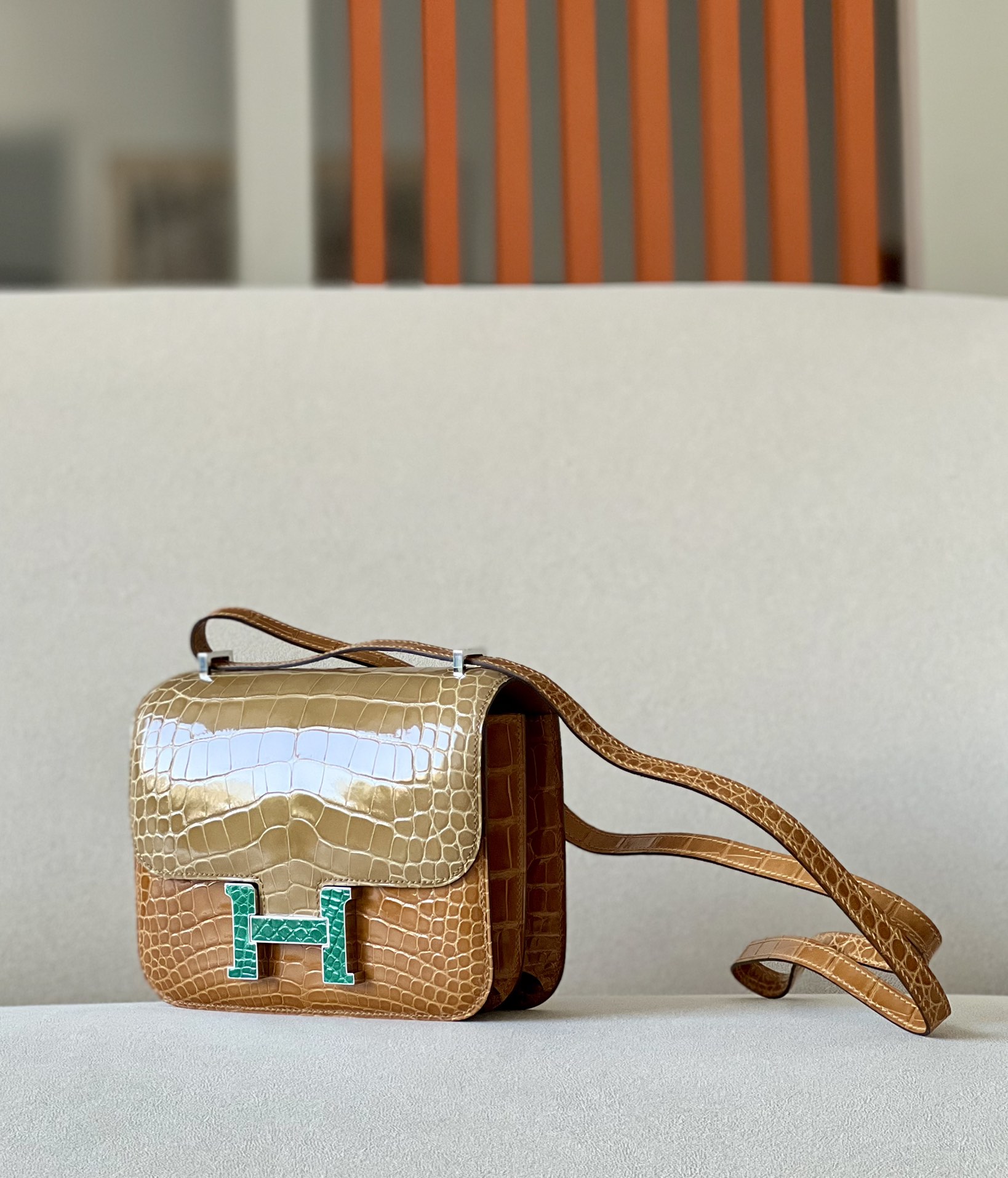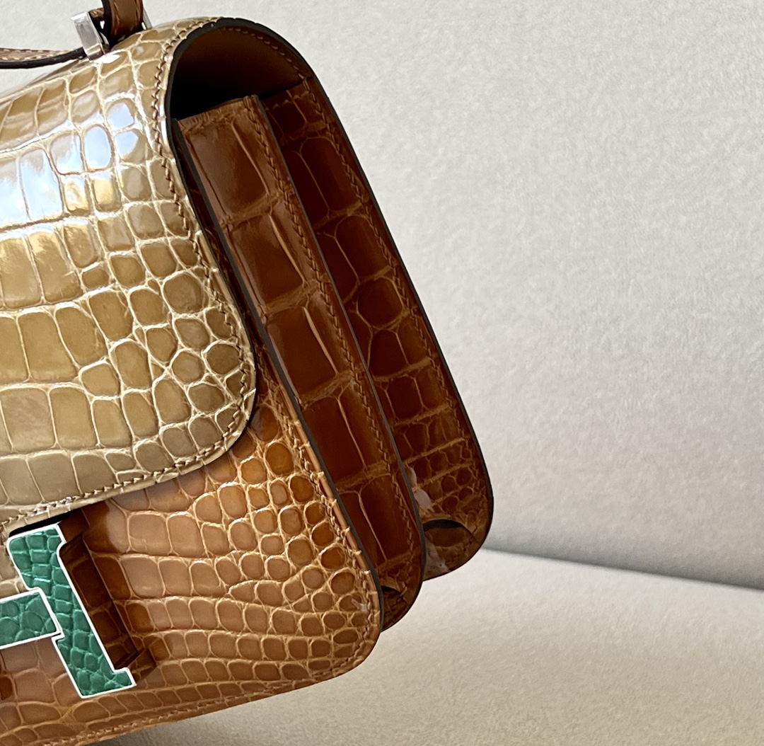 Constance 19 HSS Matte Alligator Vert Jade (O6),Vert Cypres(6O) And Beige Sable(1I) Crocs Hardware