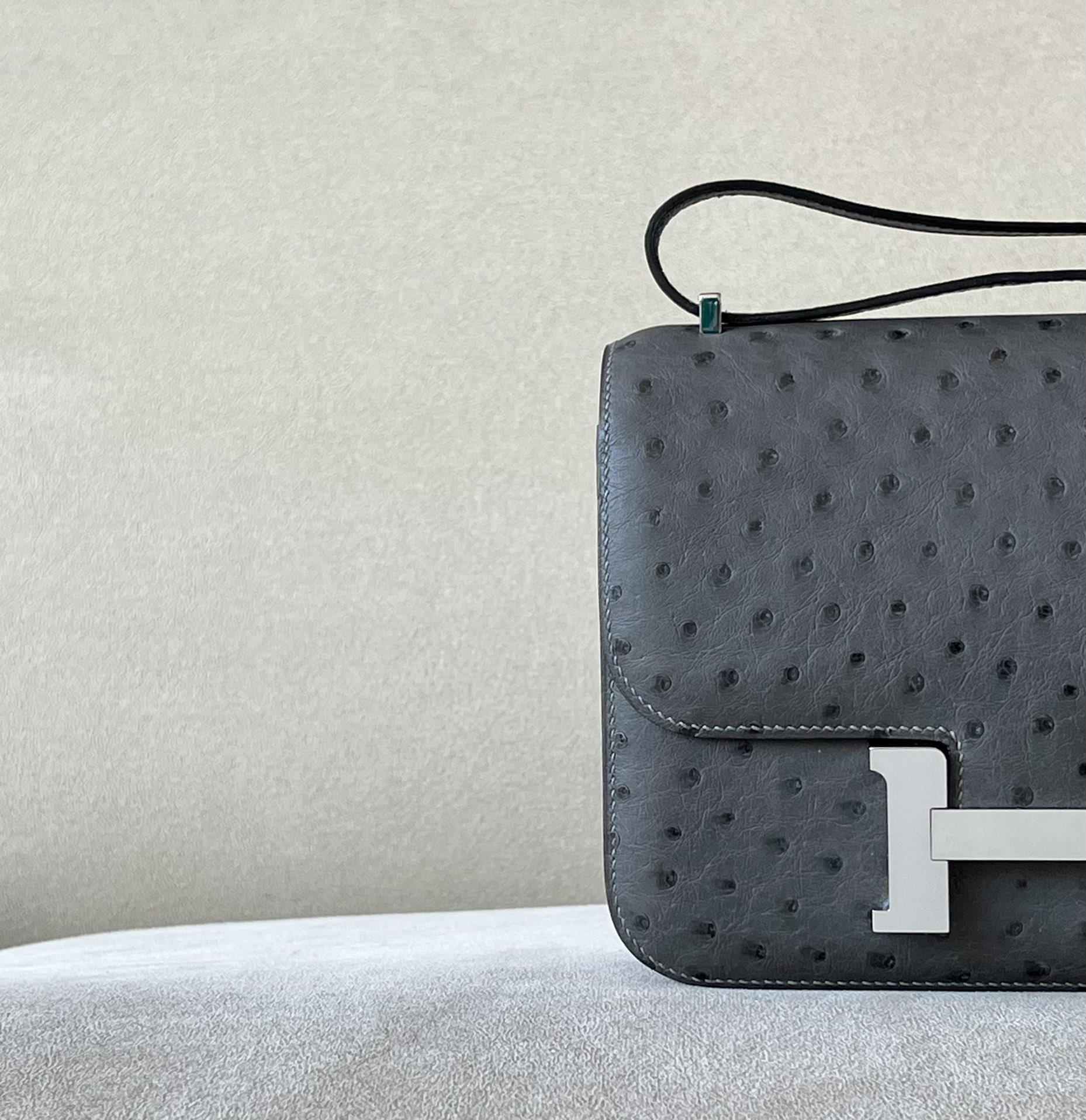 Constance 19 Ostrich Graphite (88) Palladium Hardware