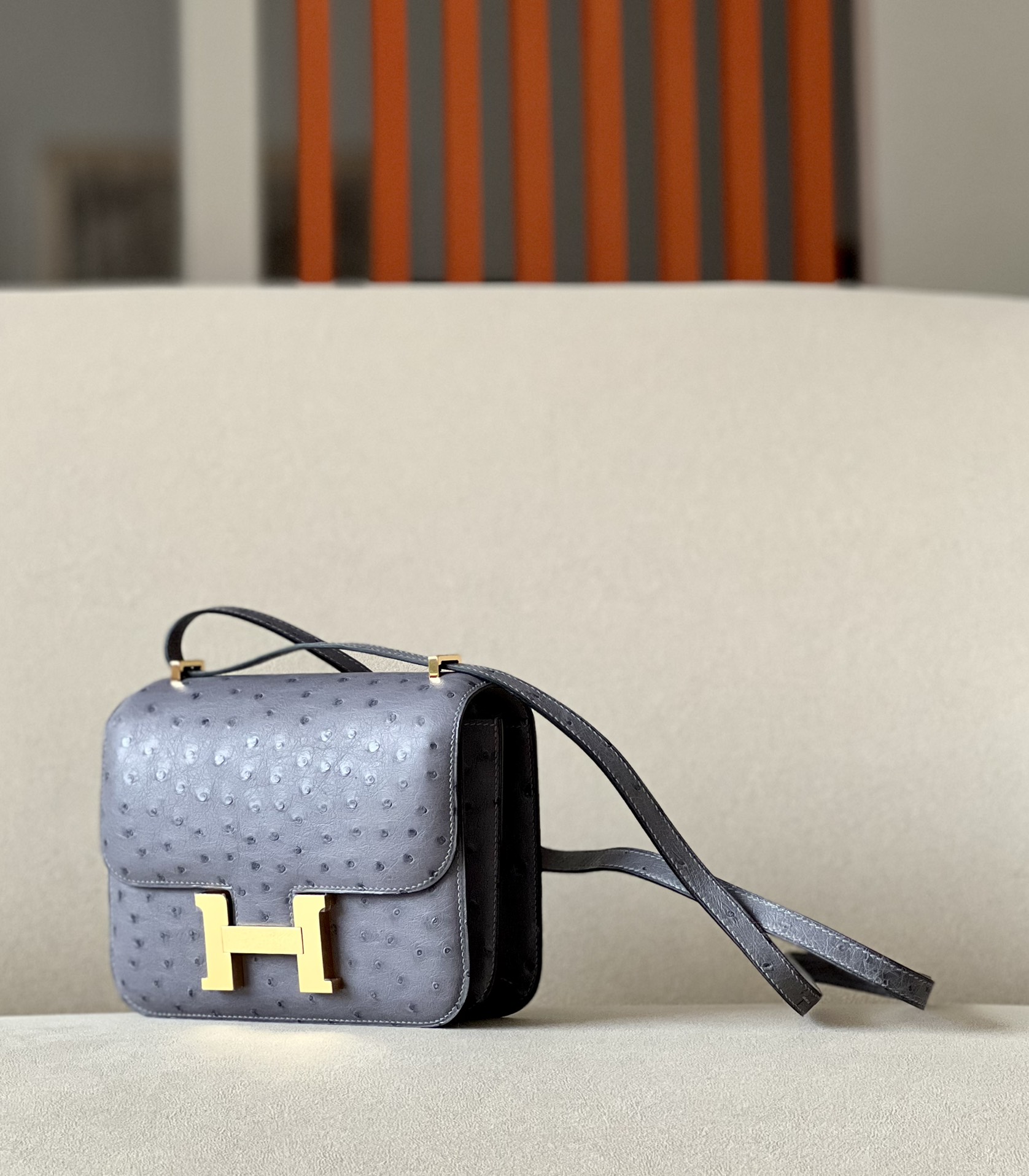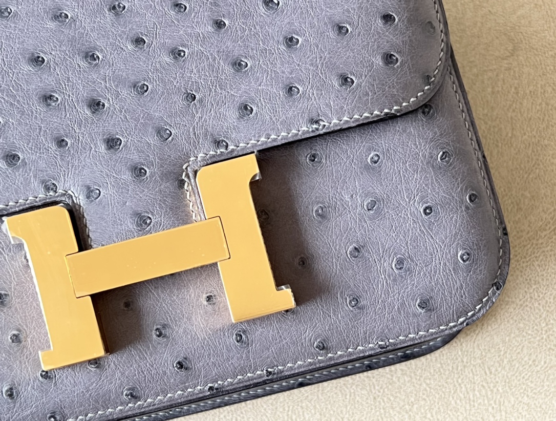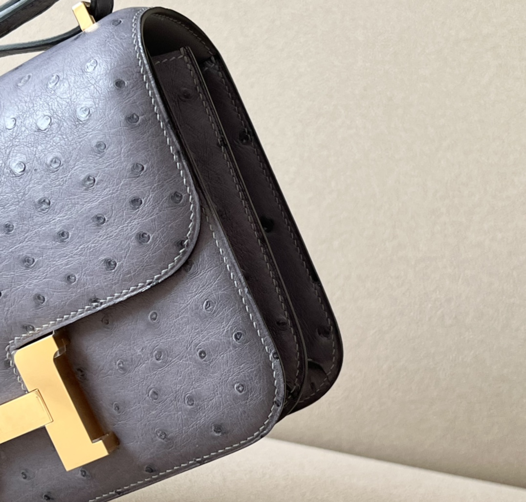 Constance 19 Ostrich Gris Agate (82) Gold Hardware