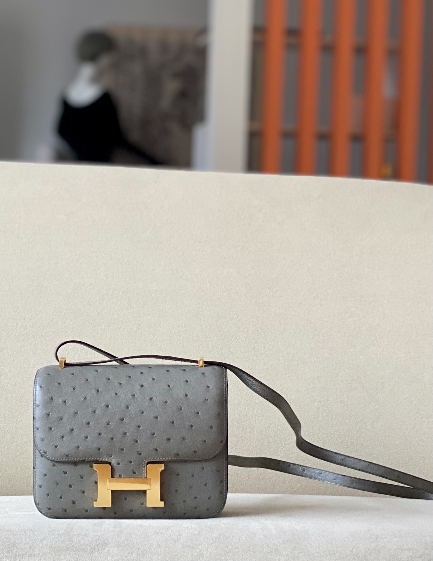 Constance 19 Ostrich Gris Asphalte (M8) Gold Hardware