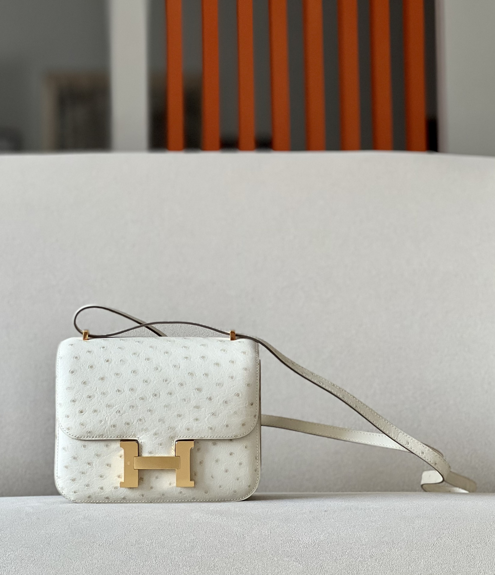 Constance 19 Ostrich Parchemin (3C) Gold Hardware