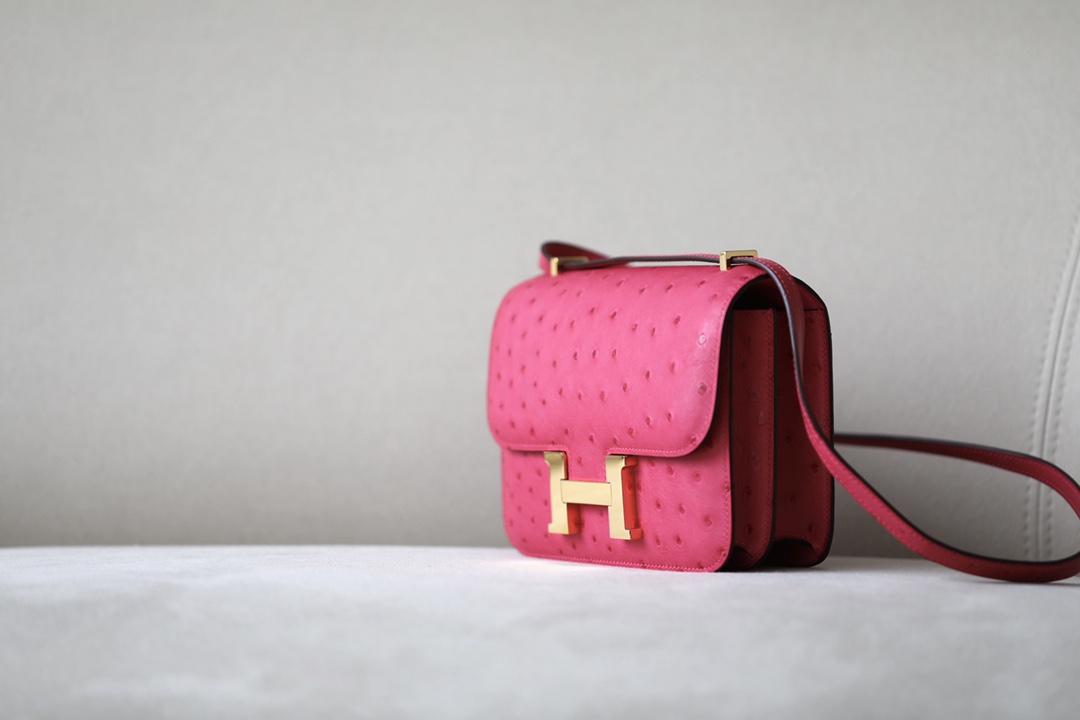 Constance 19 Ostrich Rose Tyrien (E5) Gold Hardware