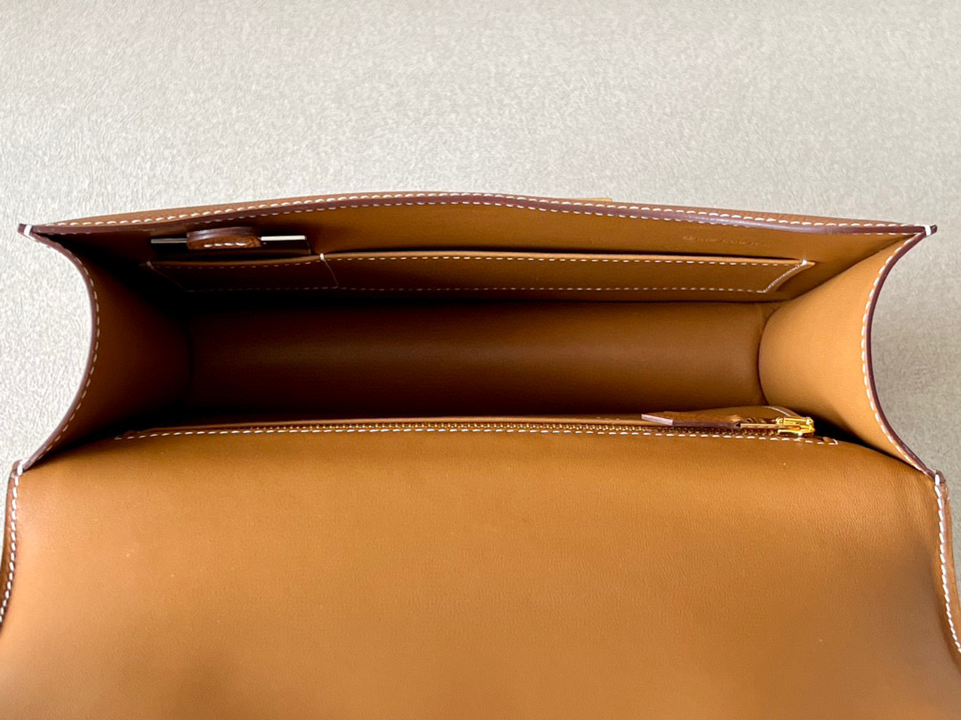 Lining in leather, two compartments, one patch pocket.