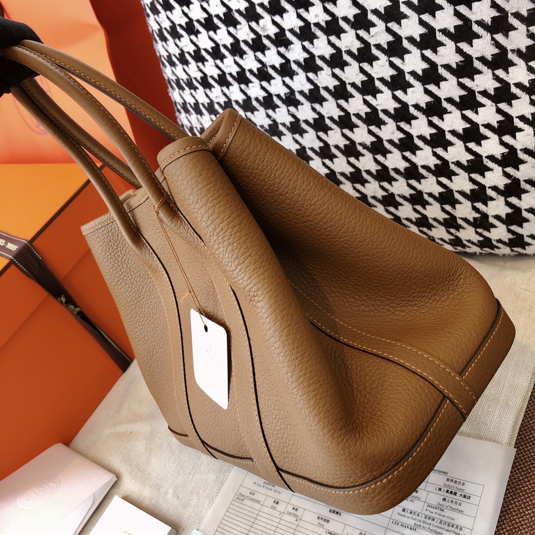 Includes ribbon, care booklet, dust bag, paper bag and box.