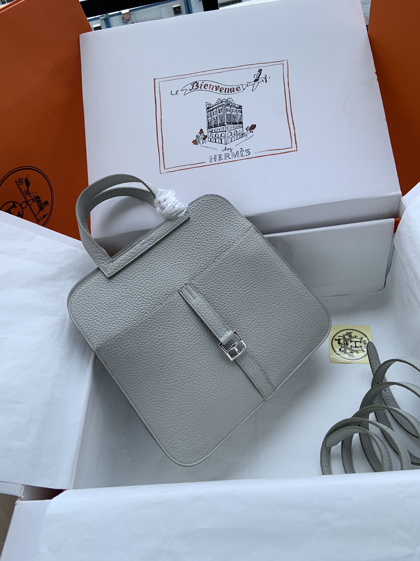Hermes Halzan 25 Clemence Gris Perle (80) Gold Hardware