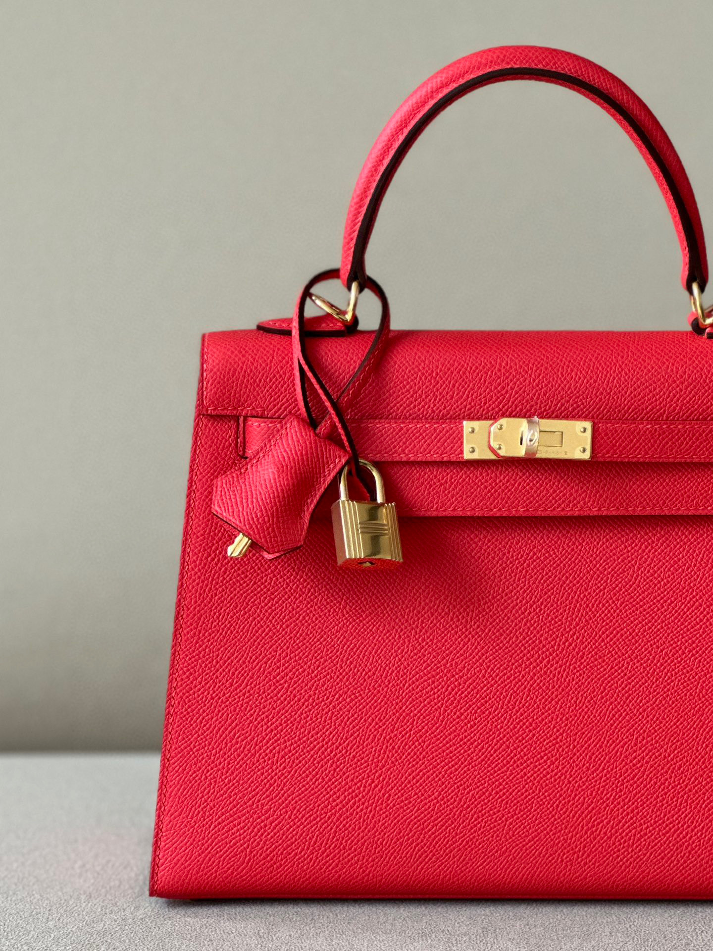 Includes lock, two keys, clochette, clochette dust bag, ribbon, care booklet, raincoat, felt protector, dust bag, and box