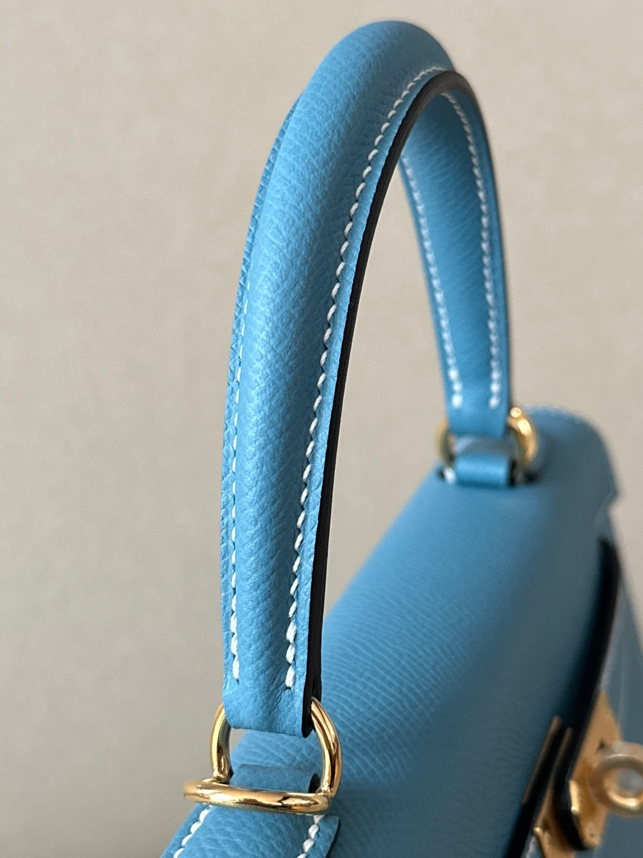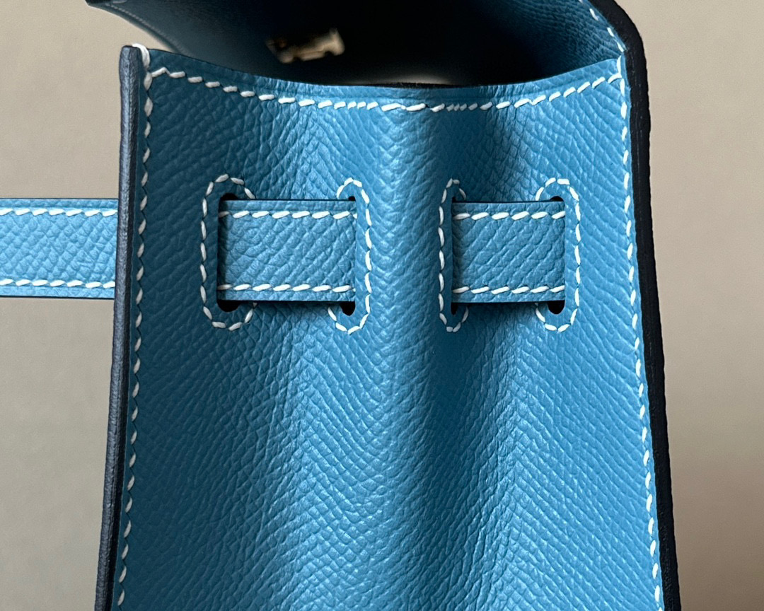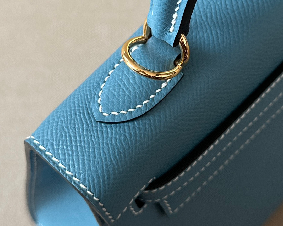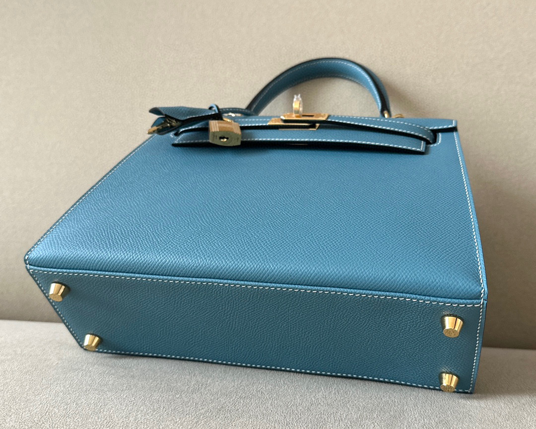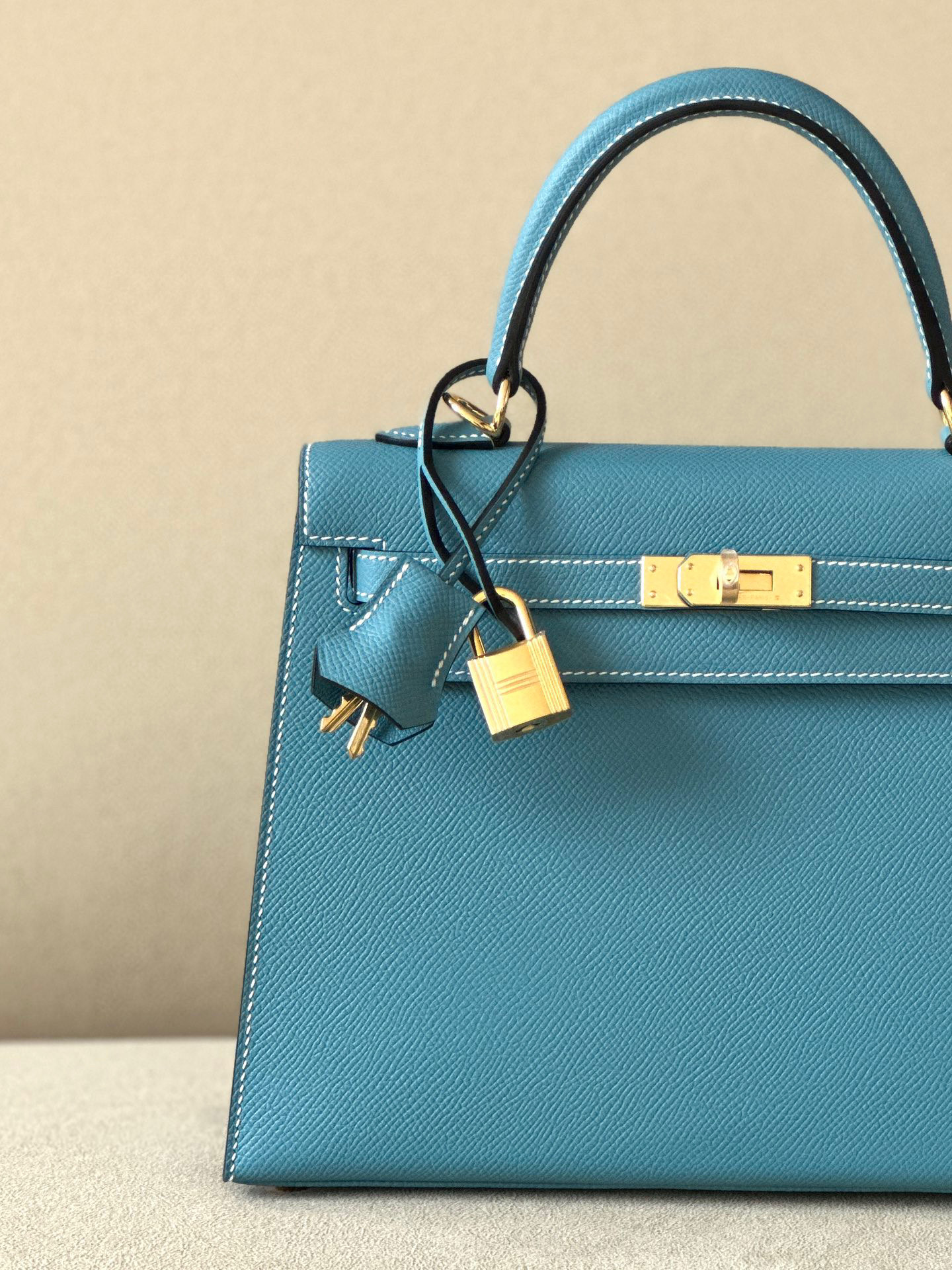 Includes lock, two keys, clochette, clochette dust bag, ribbon, care booklet, raincoat, felt protector, dust bag, and box