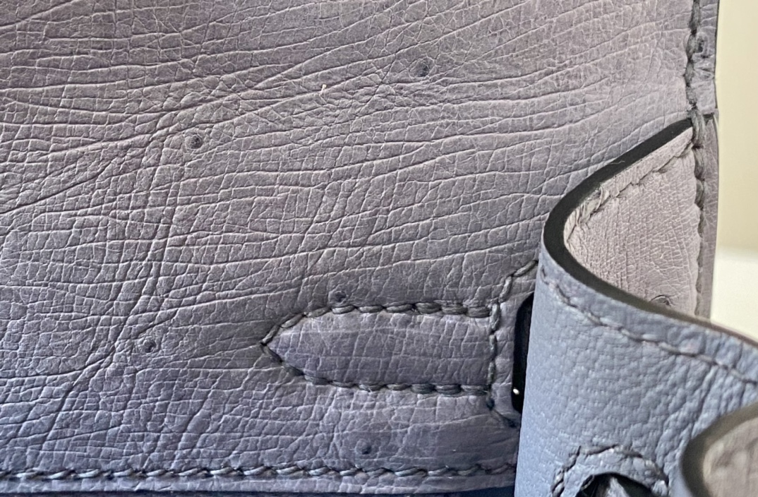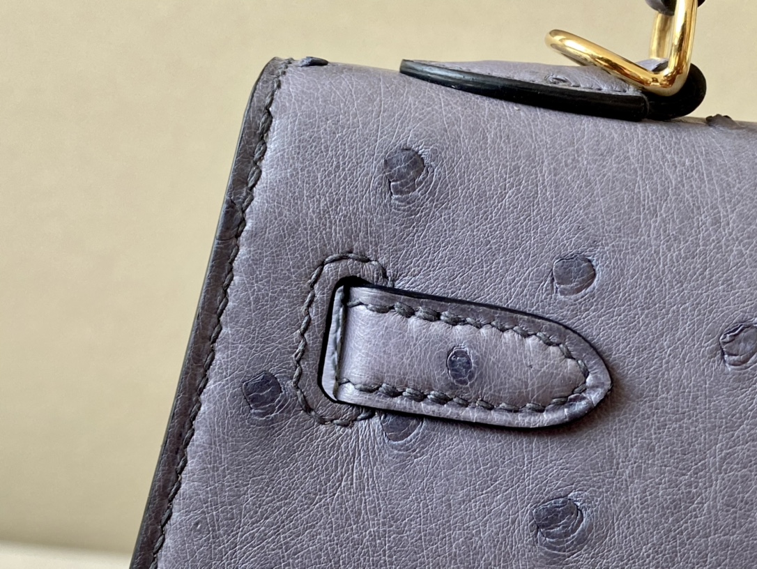 Kelly 25 Ostrich Gris Agate (82) Gold Hardware
