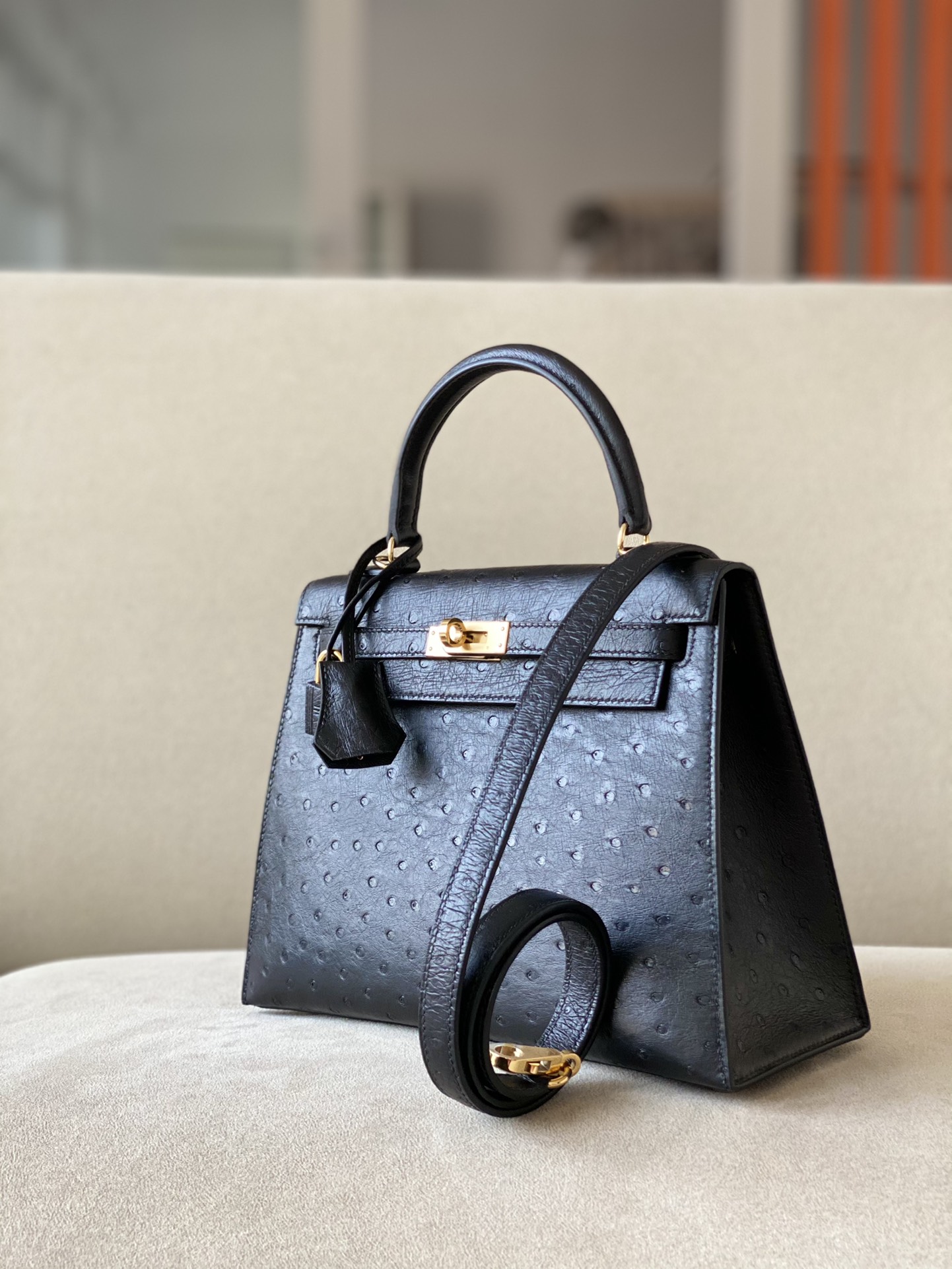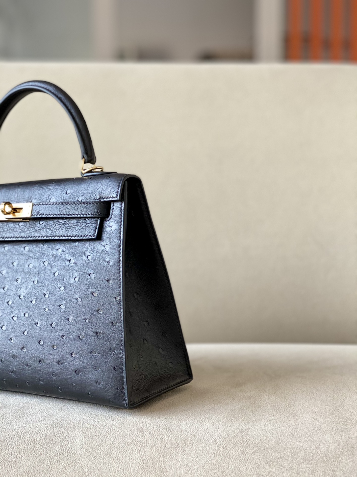 Kelly 25 Ostrich Nior(89) Gold Hardware