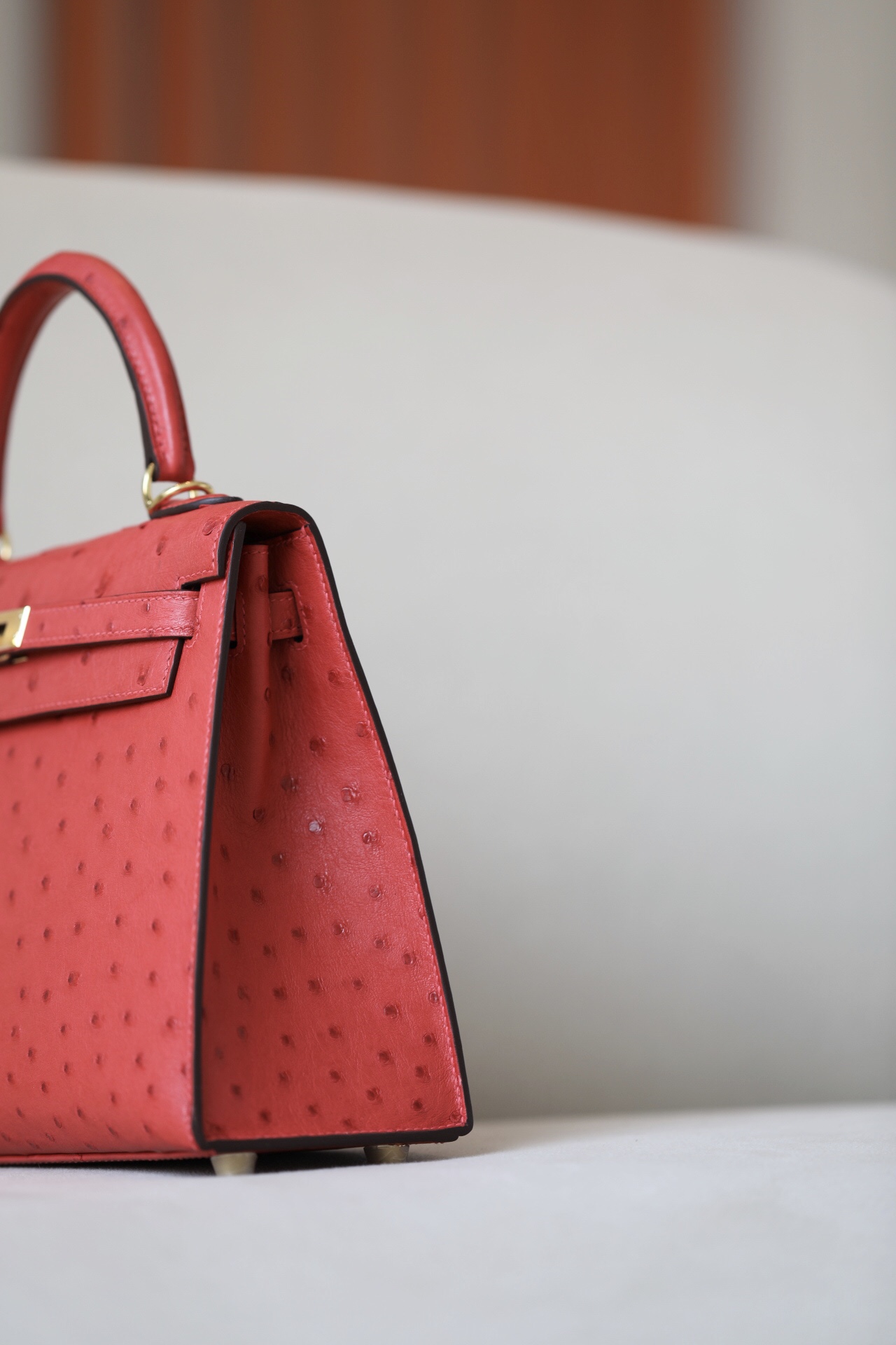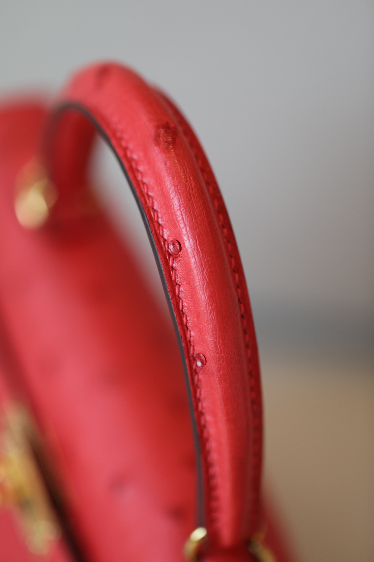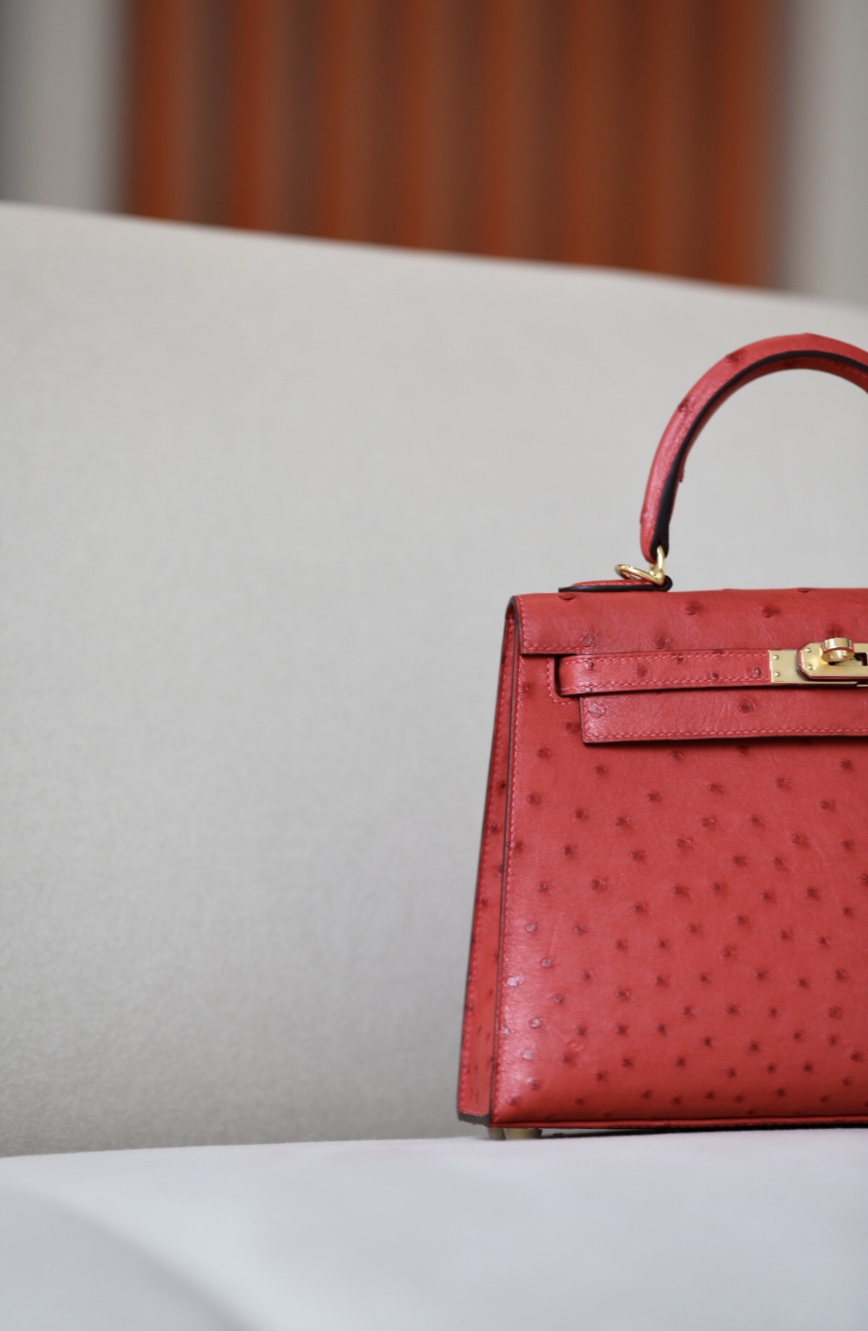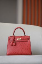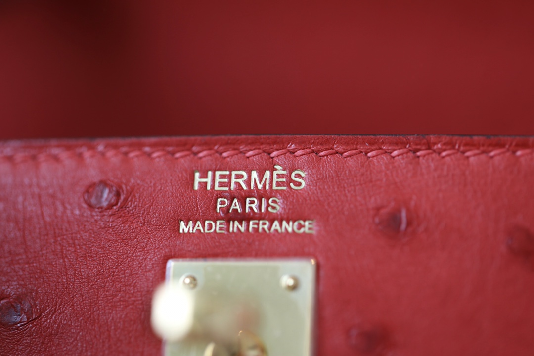 Kelly 25 Ostrich Rouge Tomate(S5) Gold Hardware