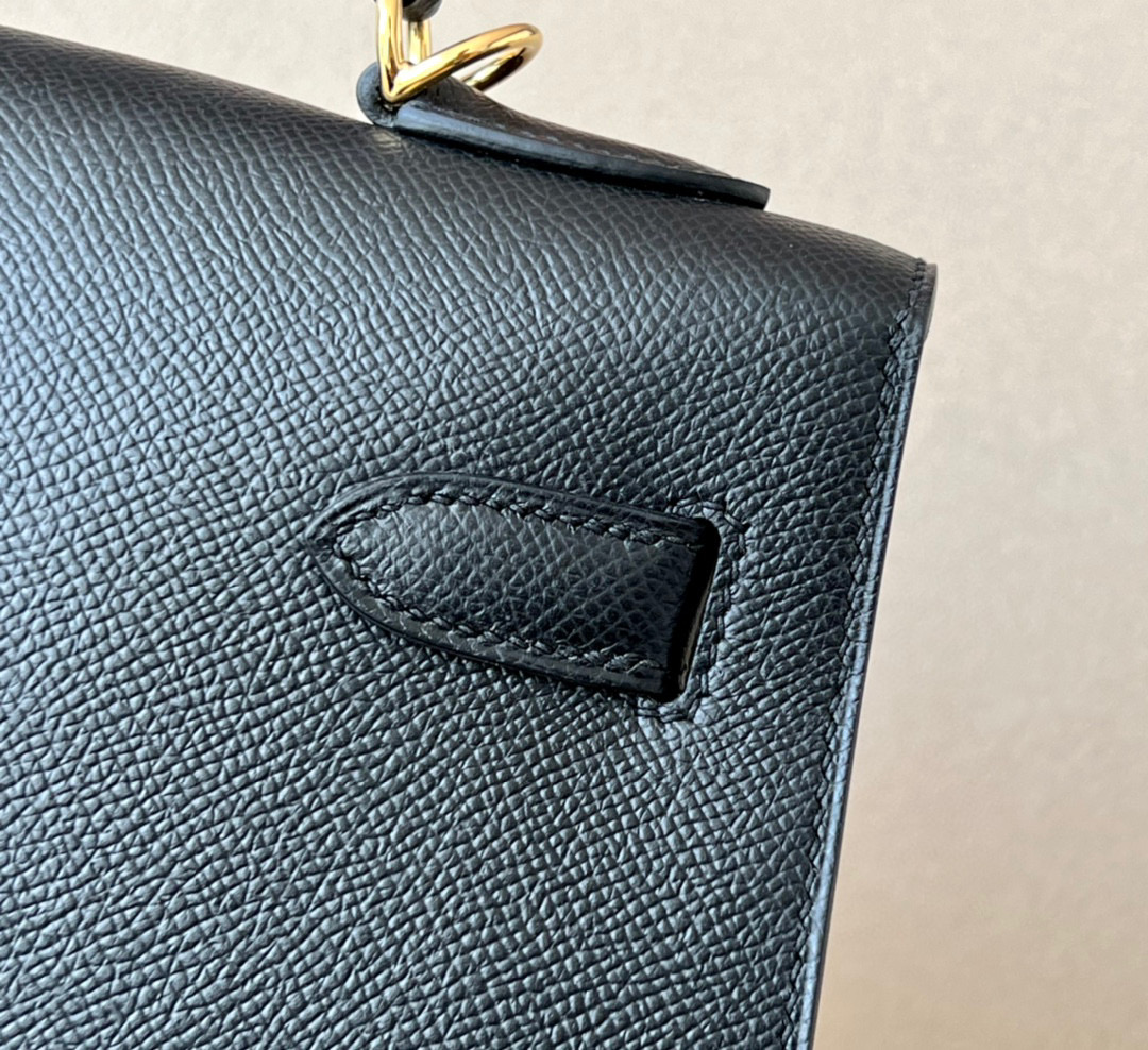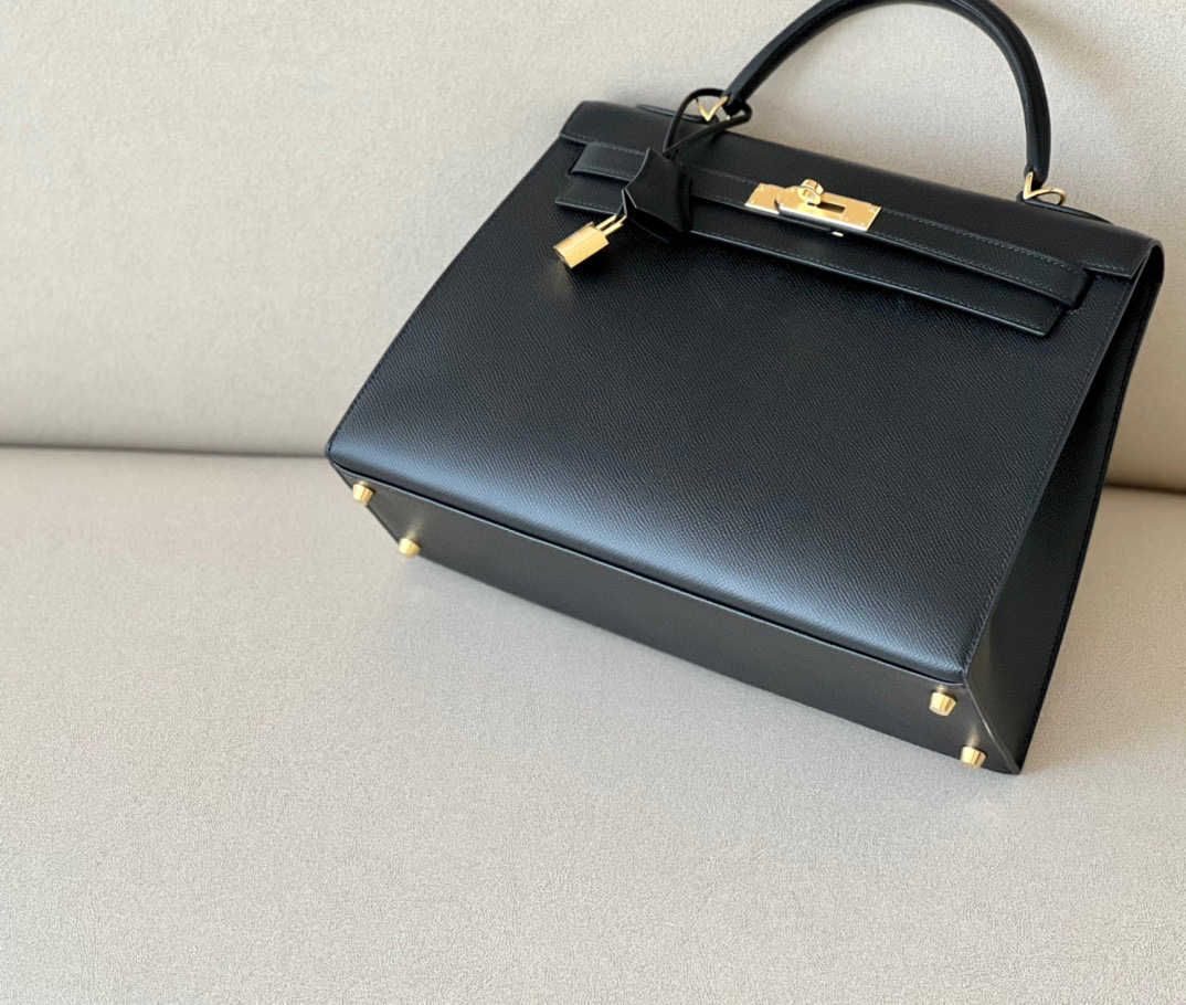 Includes lock, two keys, clochette, clochette dust bag, ribbon, care booklet, raincoat, felt protector, dust bag, and box