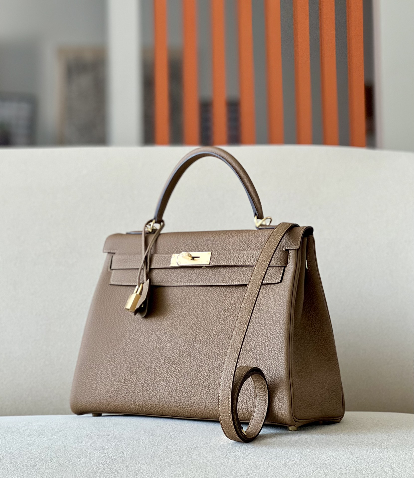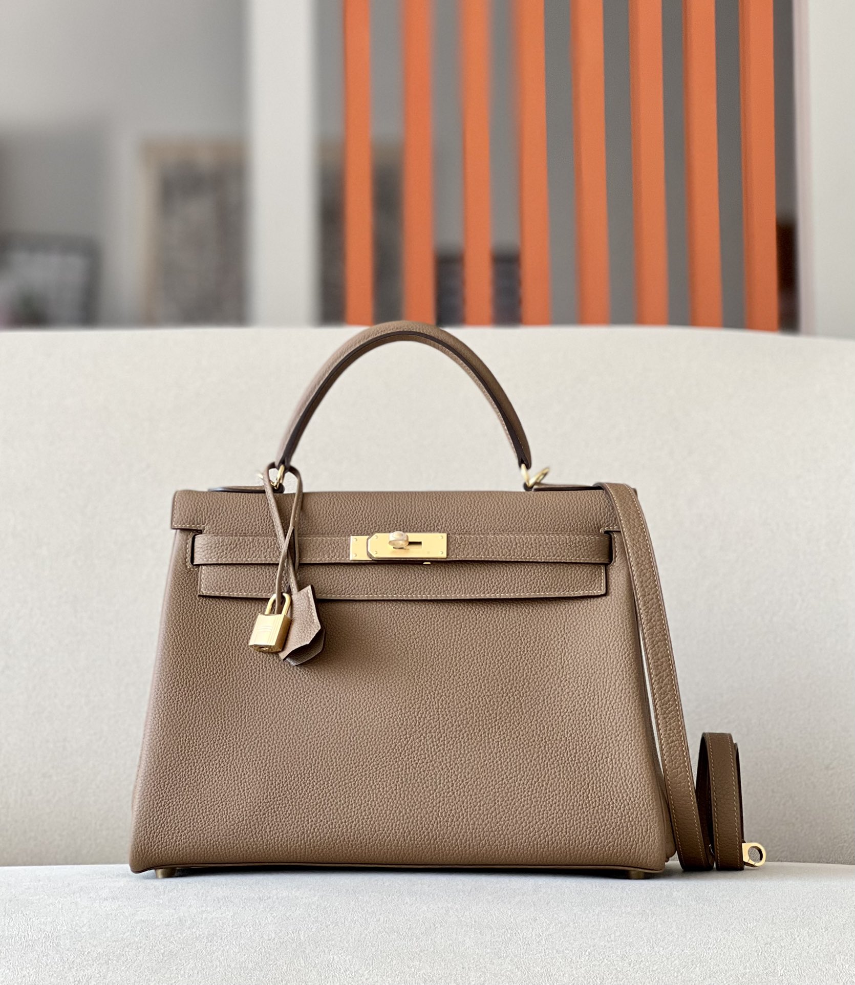 Kelly 32 Togo Alezan (3G) Gold Hardware
