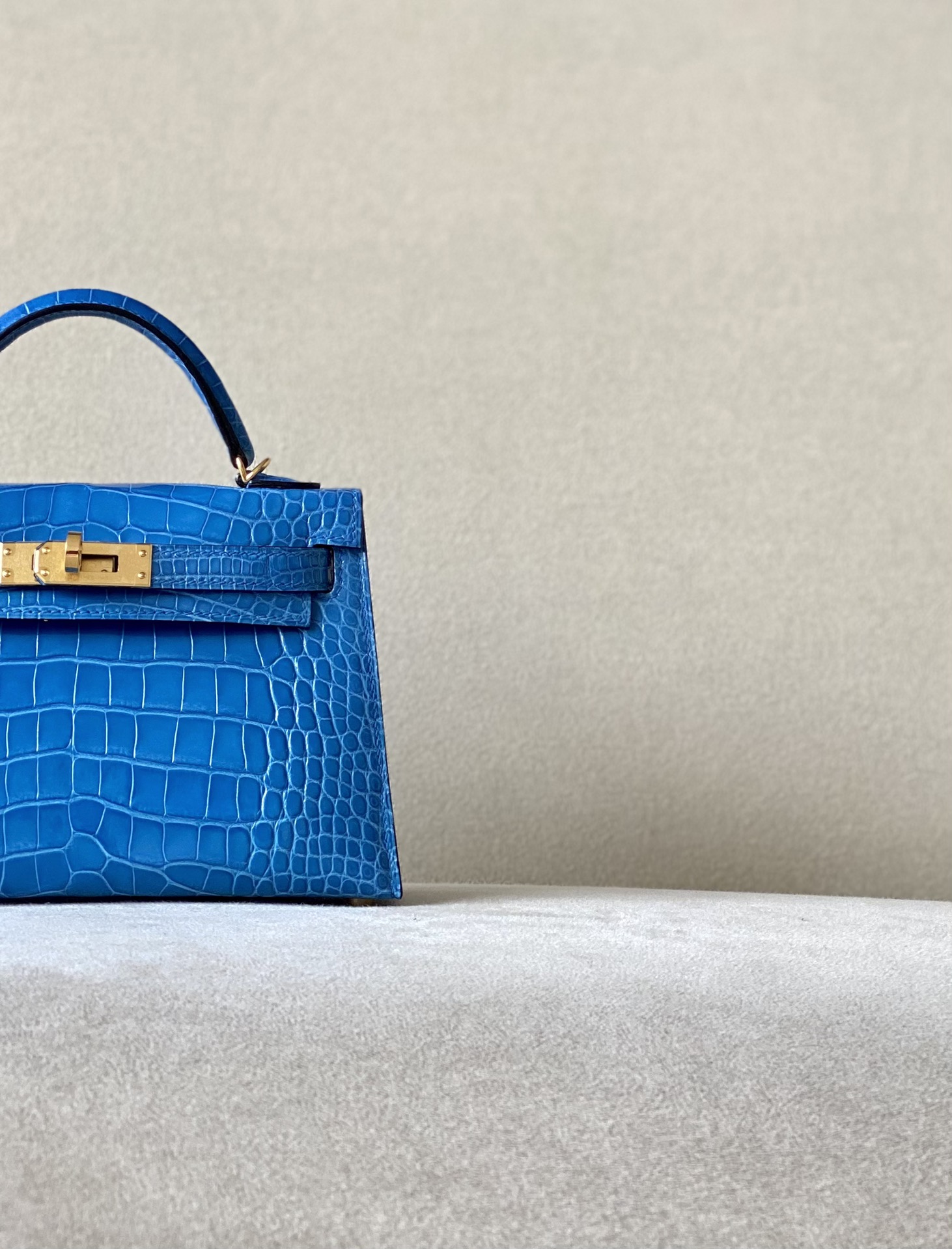 Kelly Mini Alligator Bleu Izmir (7W) Gold Hardware