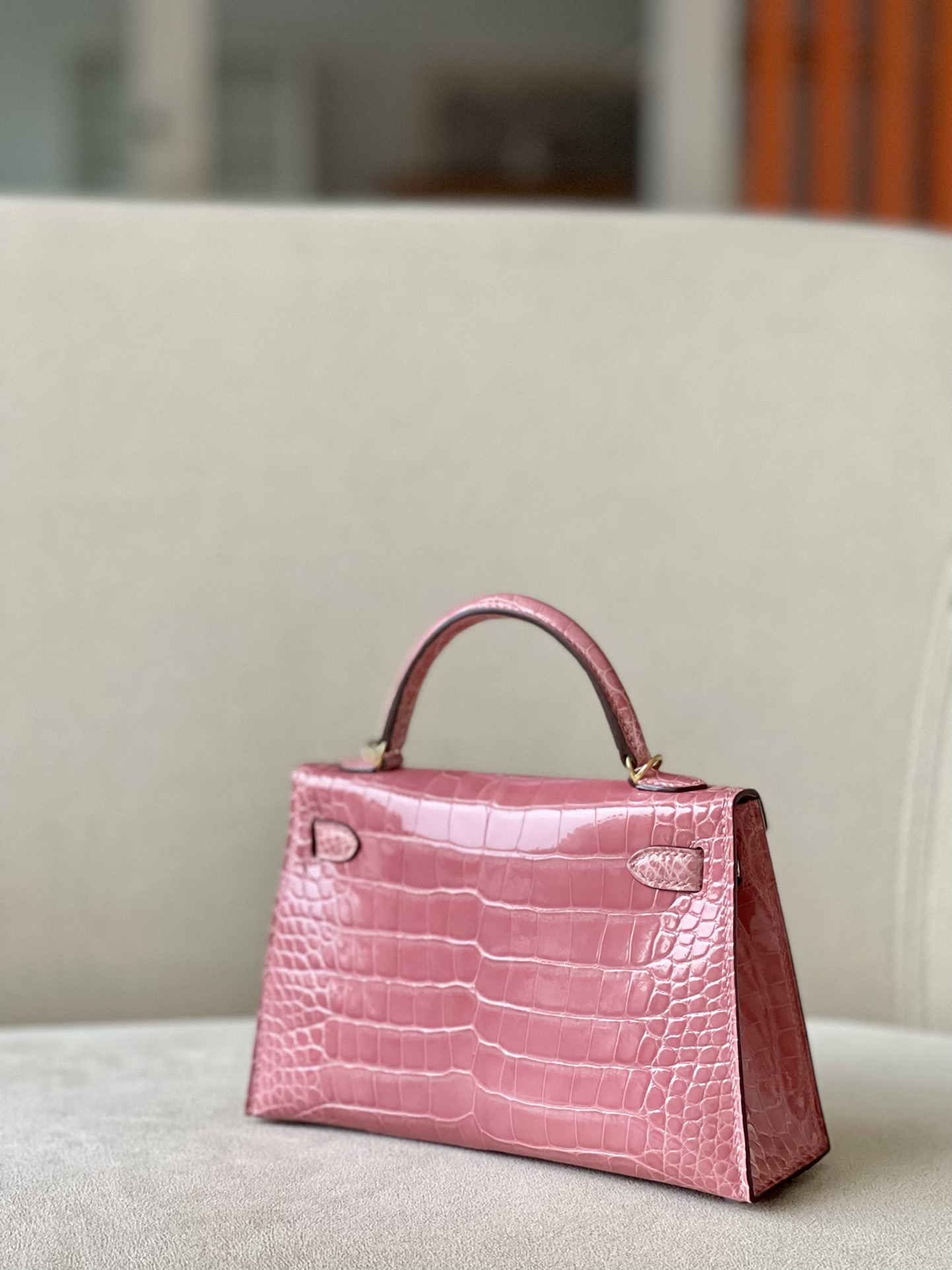 Kelly Mini Alligator Rose Sakura (3Q) Palladium Hardware