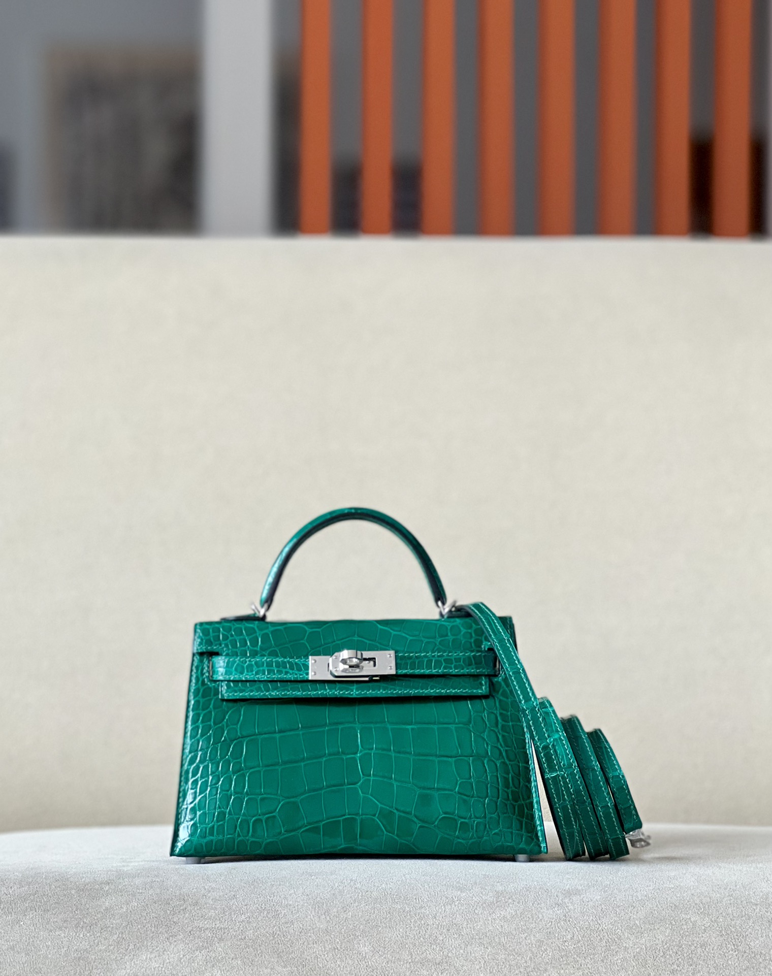 Kelly Mini Alligator Vert Emeraude (6Q) Palladium Hardware