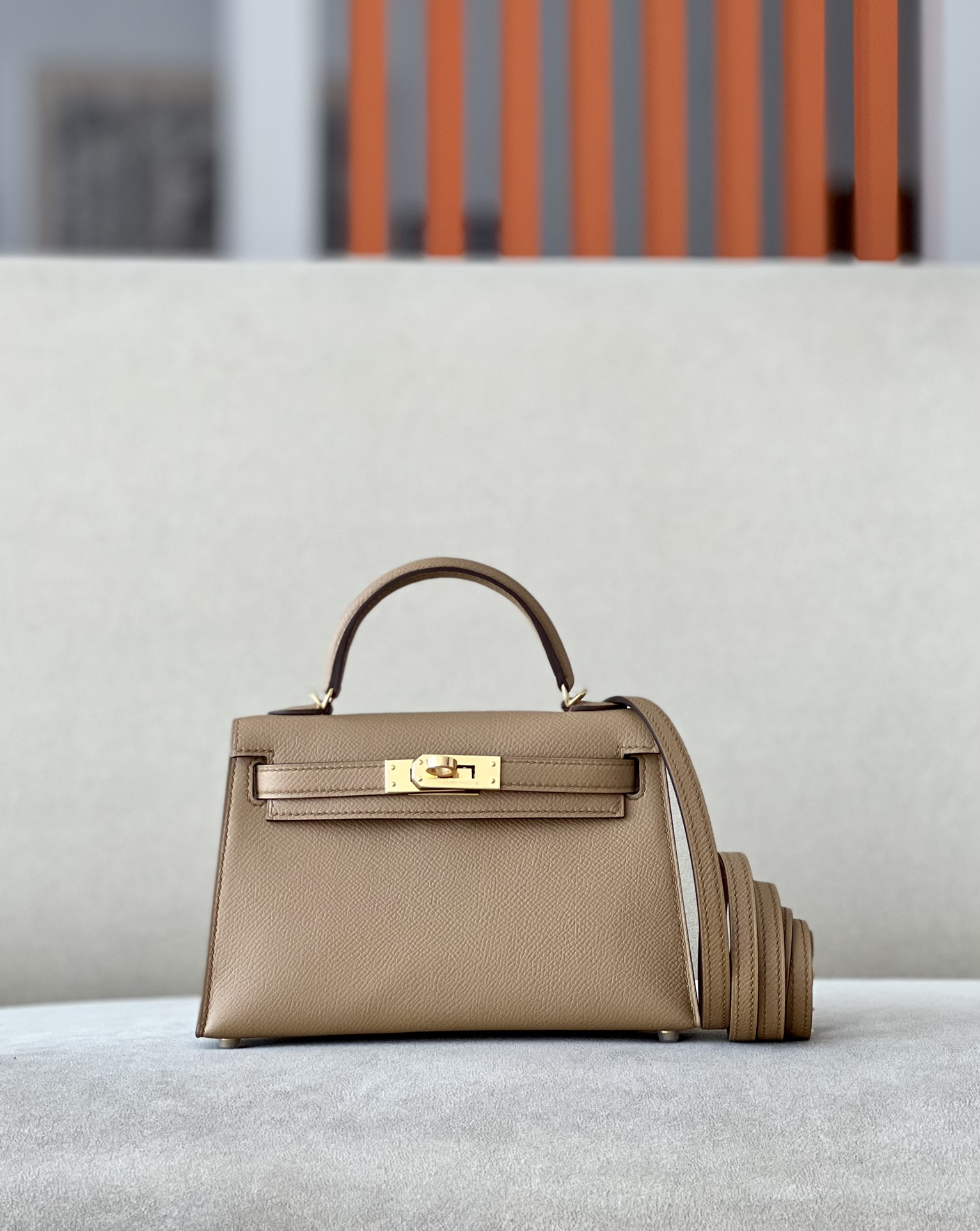 Kelly Mini Epsom Chai (0M) Gold Hardware