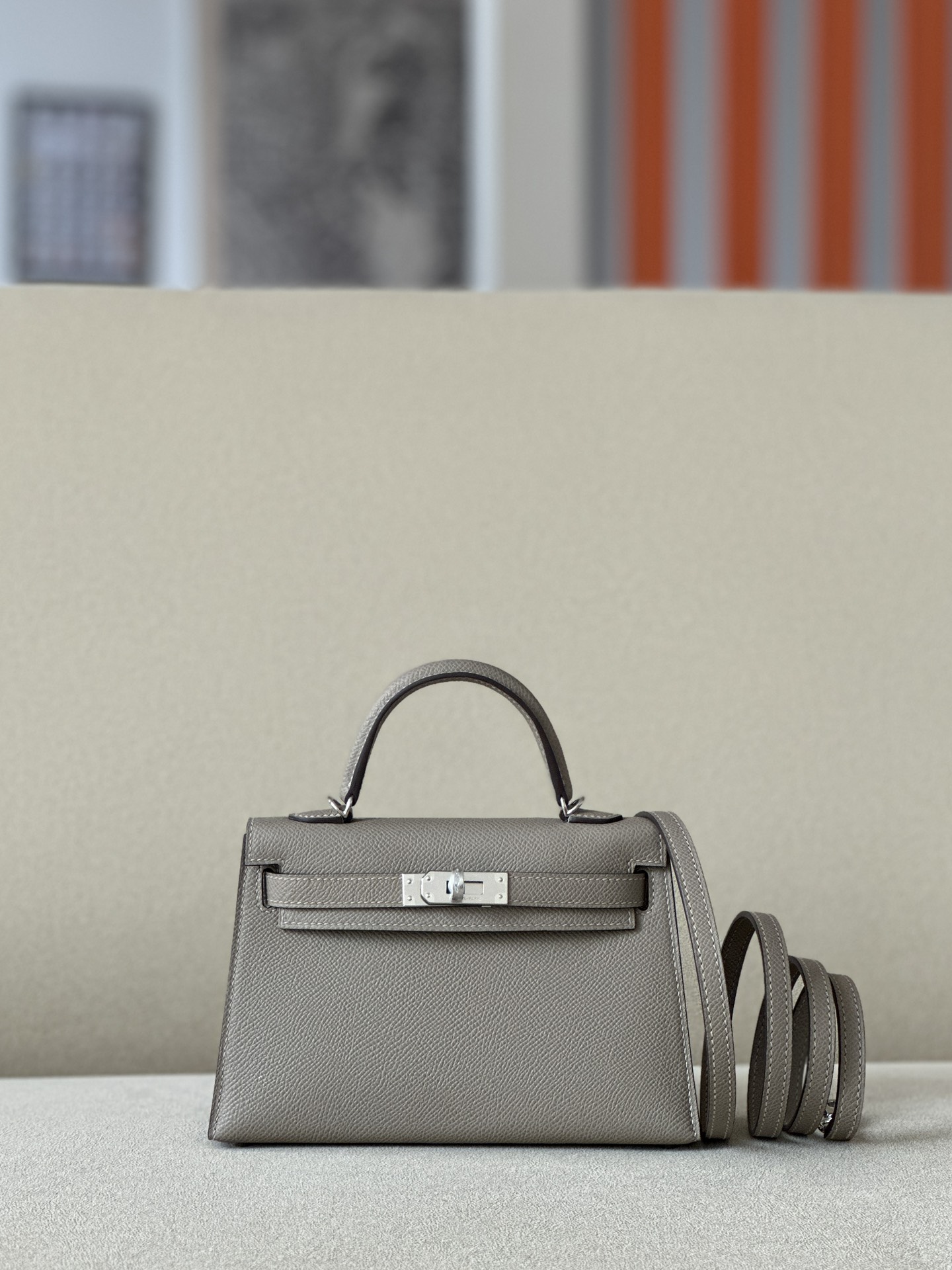 Kelly Mini Epsom Gris Asphalte (M8) Palladium Hardware