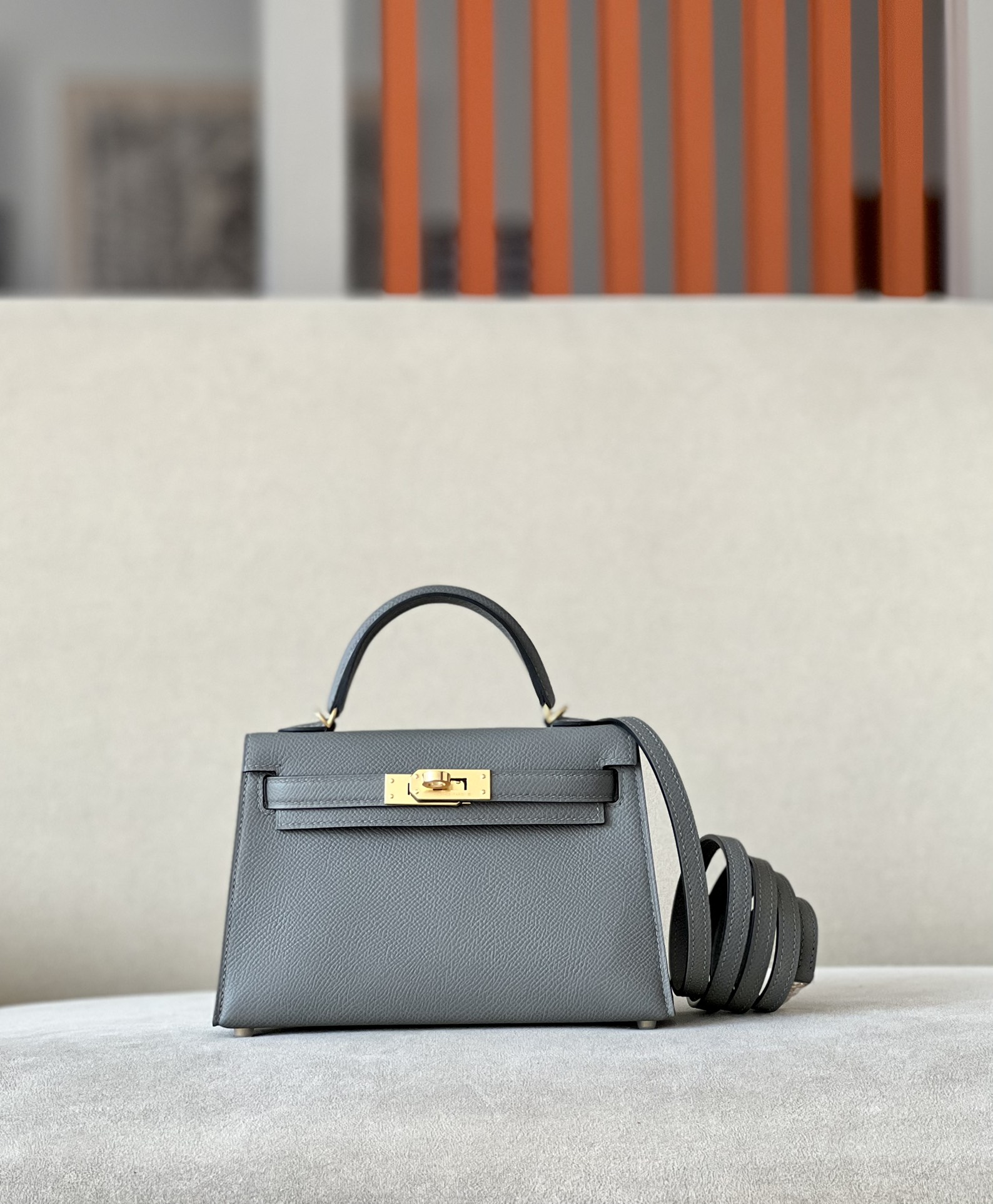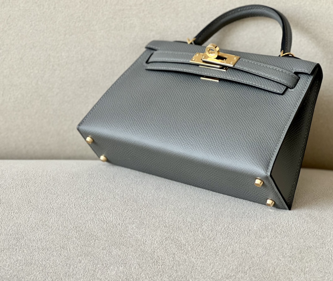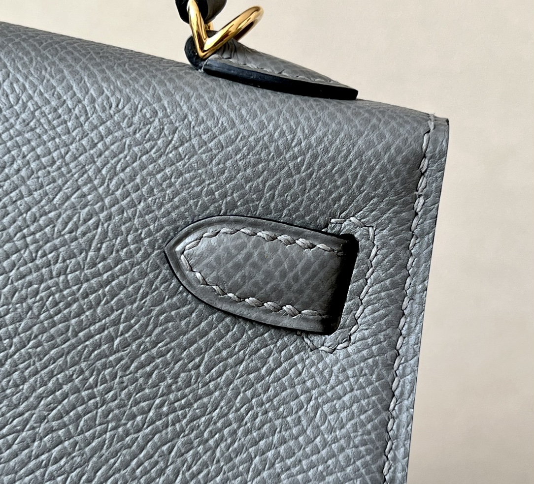 Kelly Mini Epsom Gris Meyer (0L) Gold Hardware