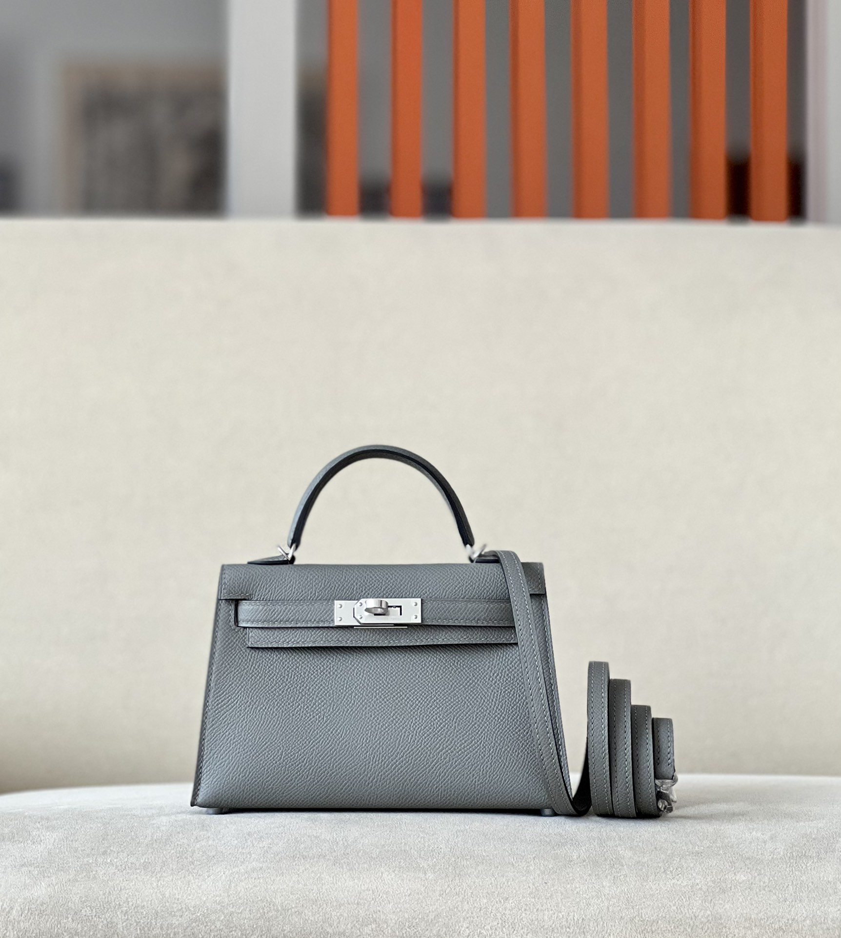 Kelly Mini Epsom Gris Meyer (0L) Palladium Hardware