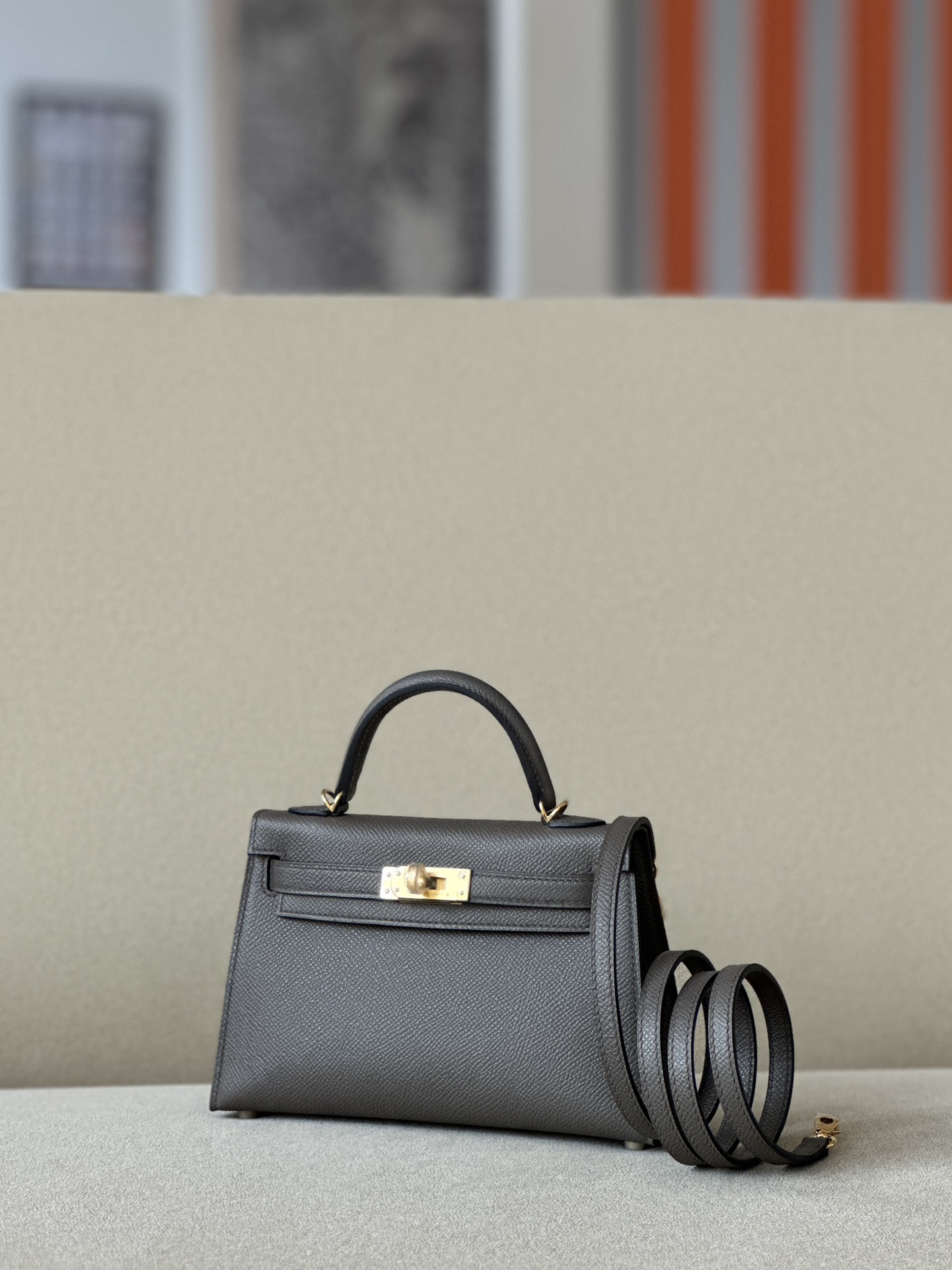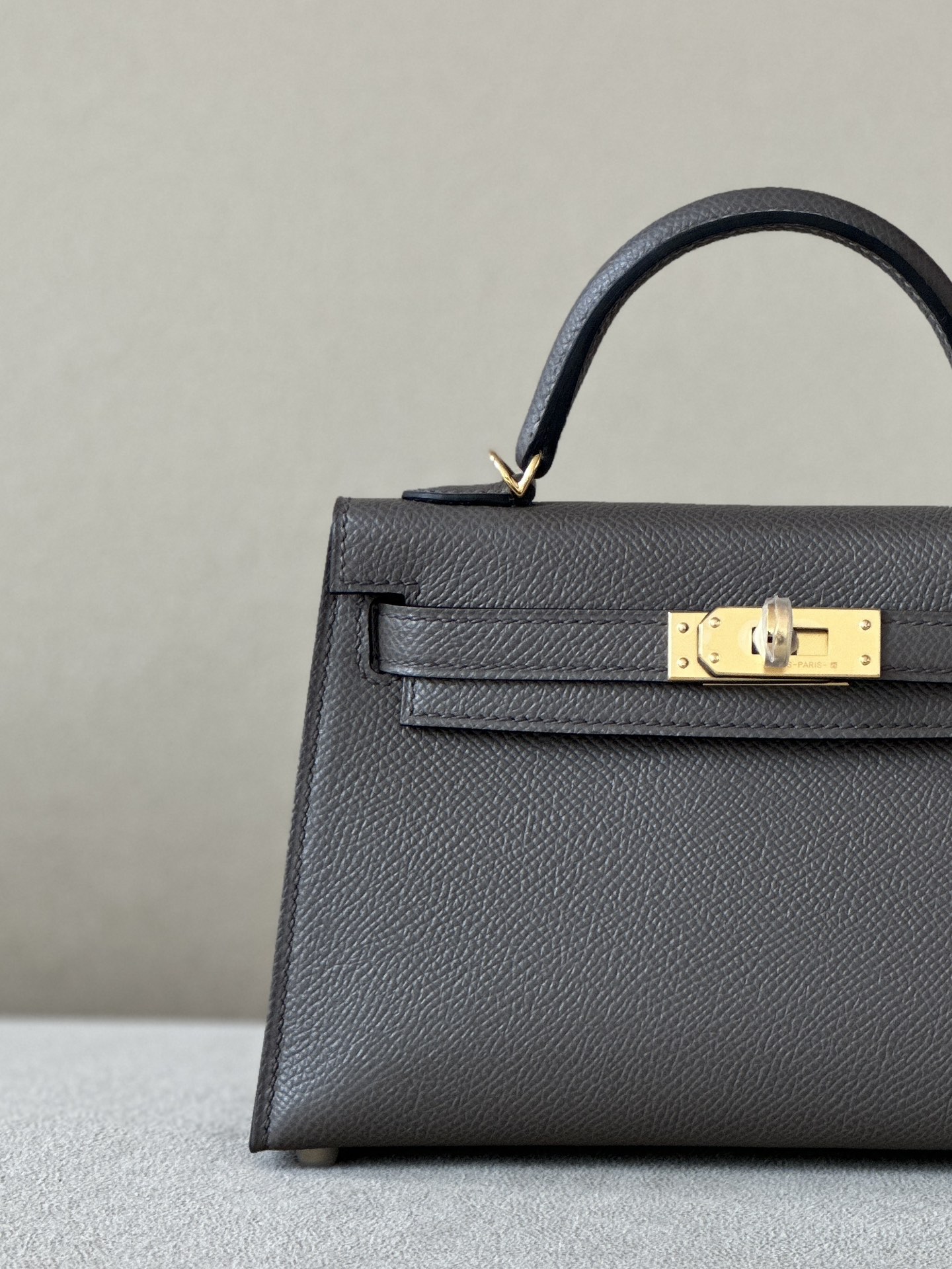 Kelly Mini Epsom Etain (8F) Gold Hardware