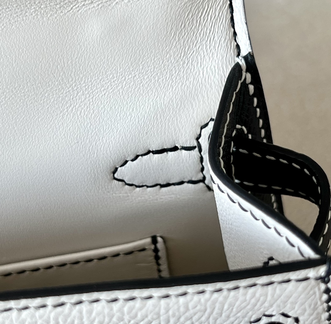 The interior is lined in chèvre leather.