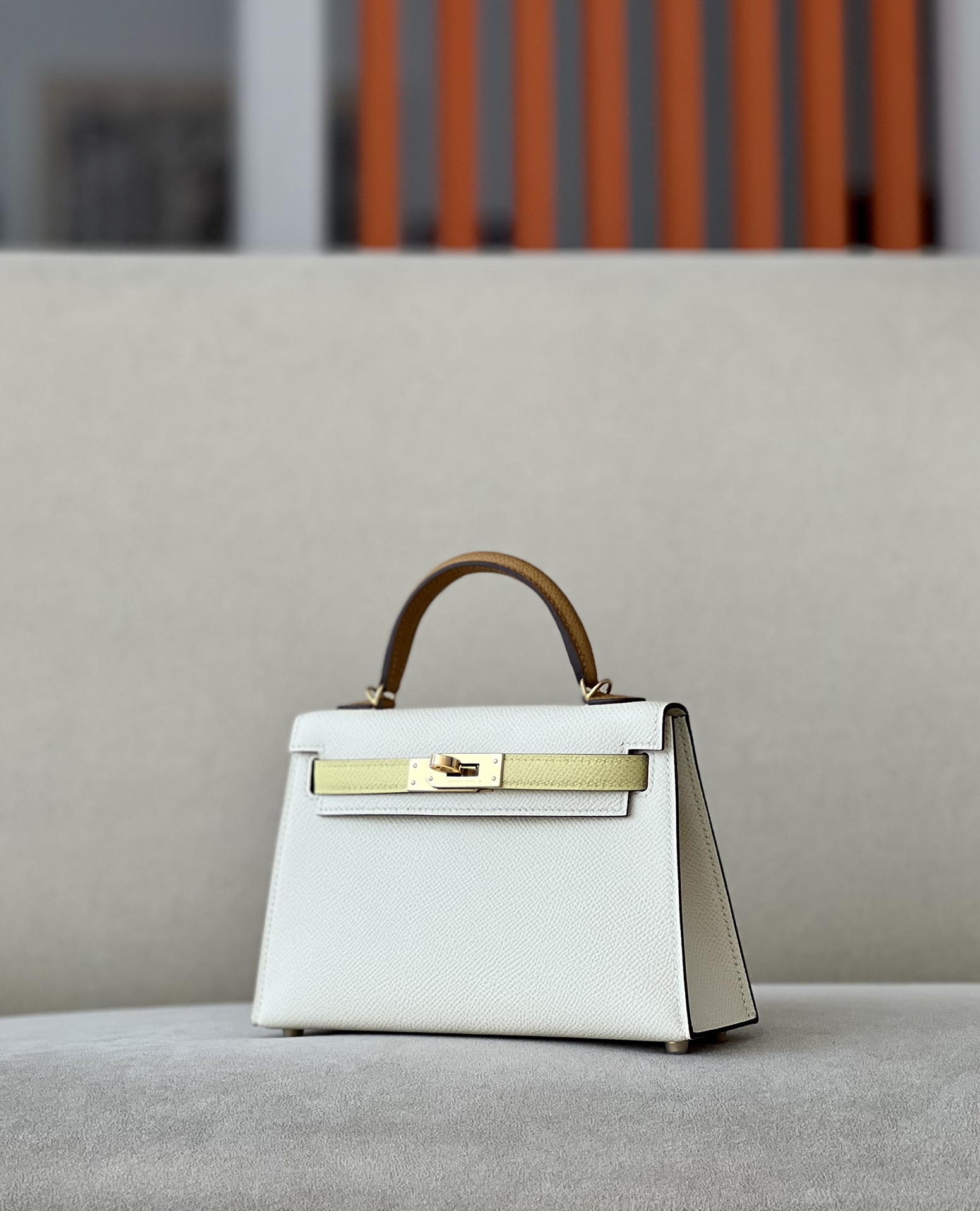 Kelly Mini HSS Epsom Nata(I2), Sesame(2S) And Jaune Poussin(1Z) Gold Hardware