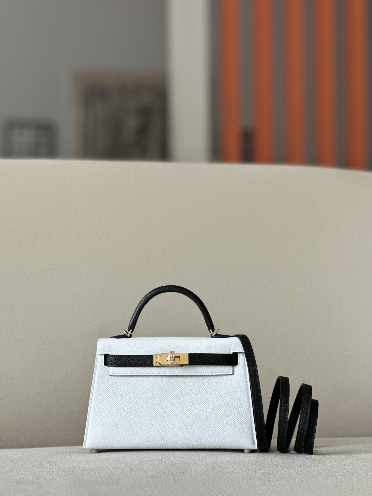 Kelly Mini HSS Epsom Nior(89) And Blanc(01)Gold Hardware