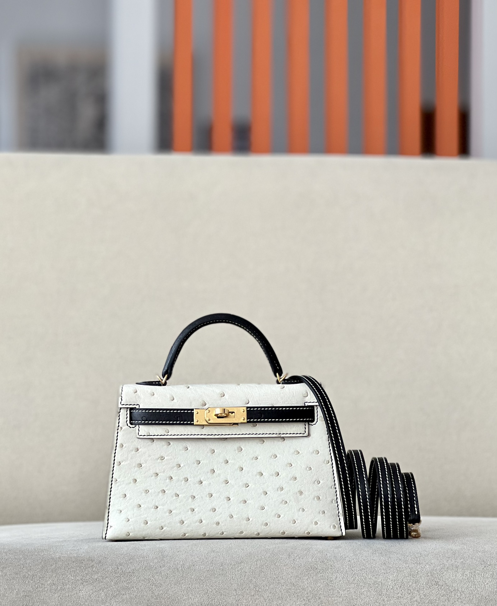 Kelly Mini HSS Ostrich Beton(8L) And Nior(89)Gold Hardware
