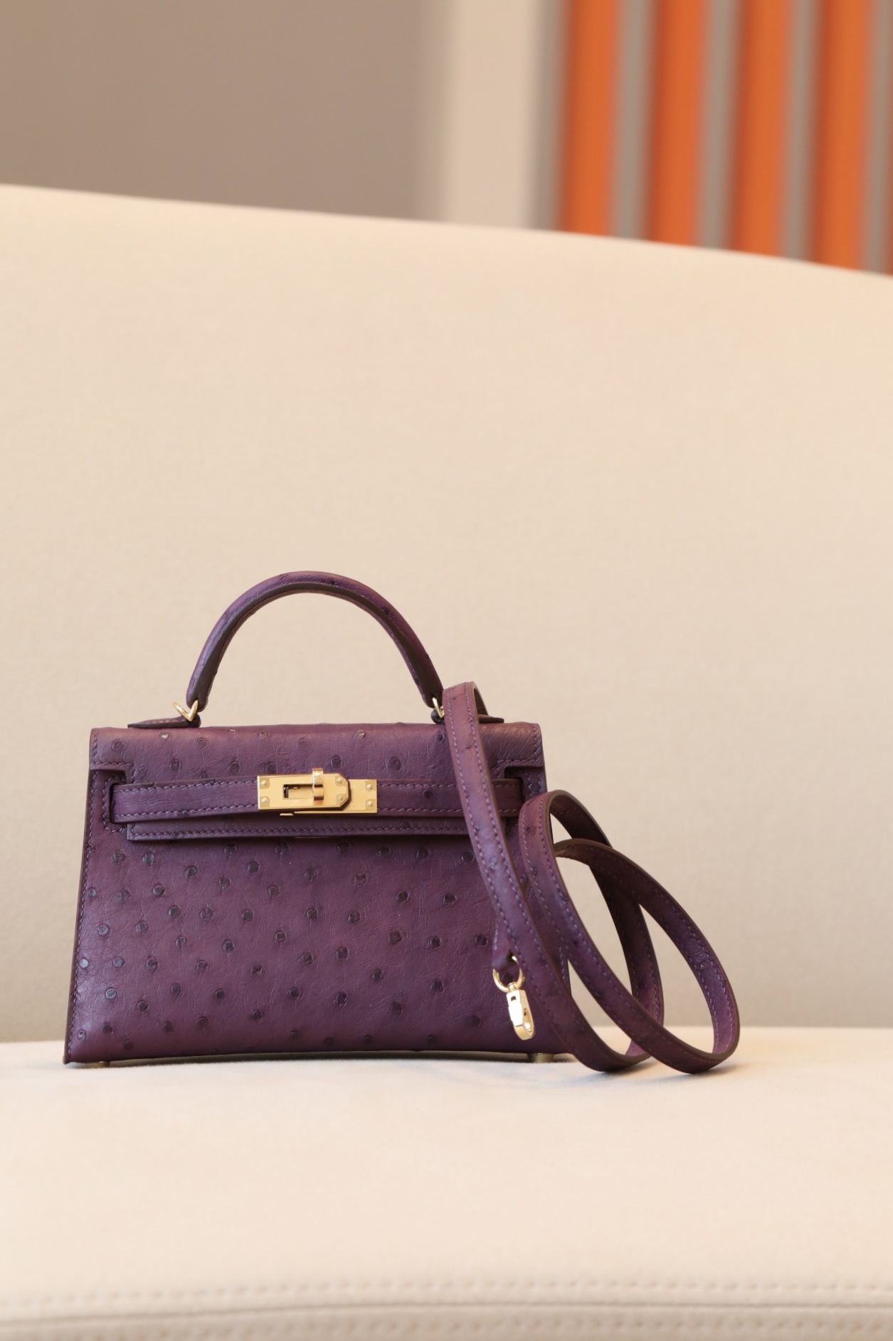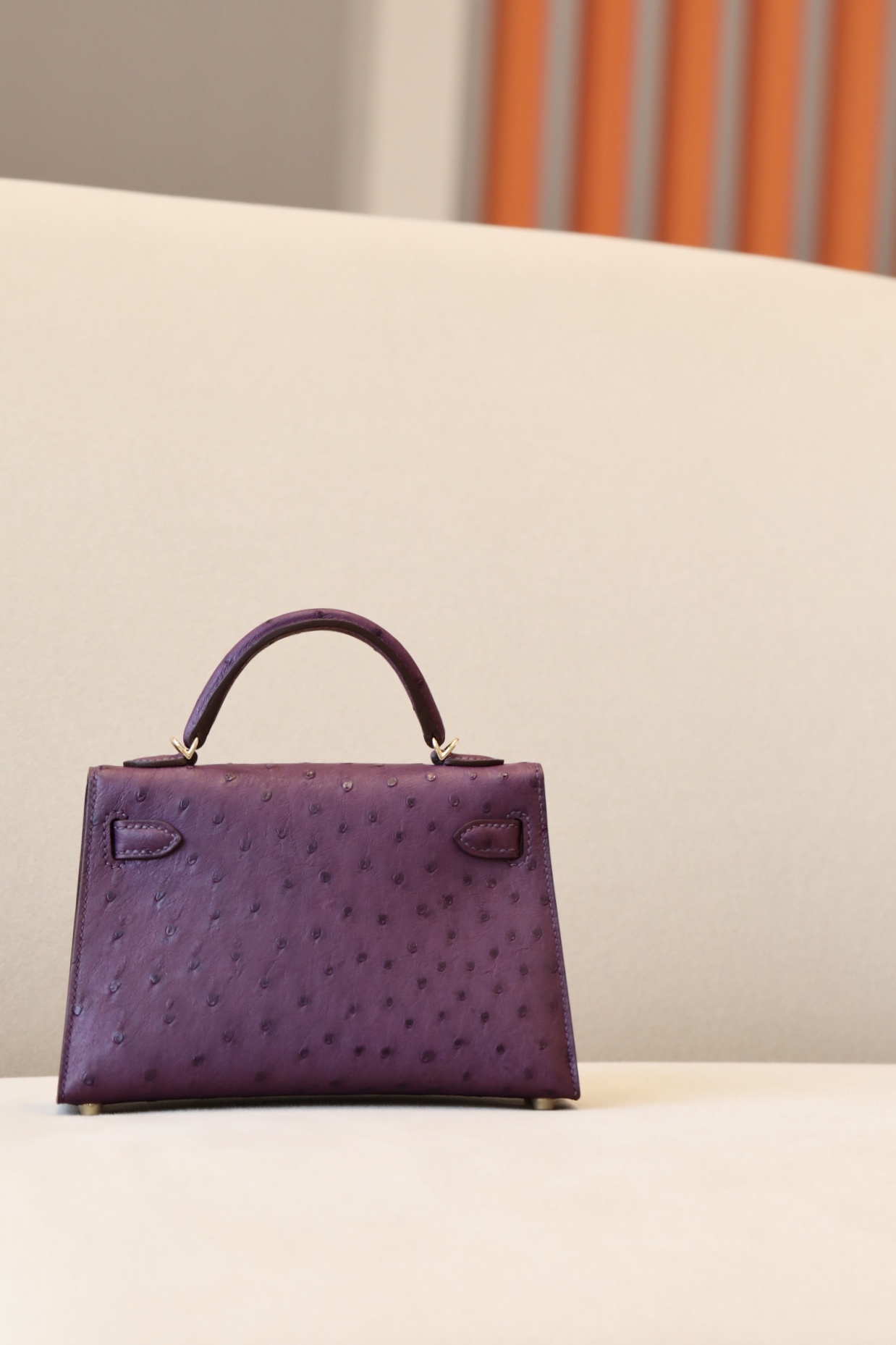 Kelly Mini Ostrich Anemone (P9) Gold Hardware