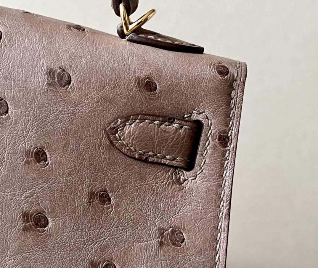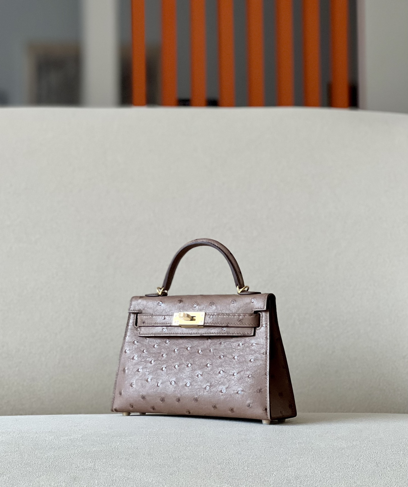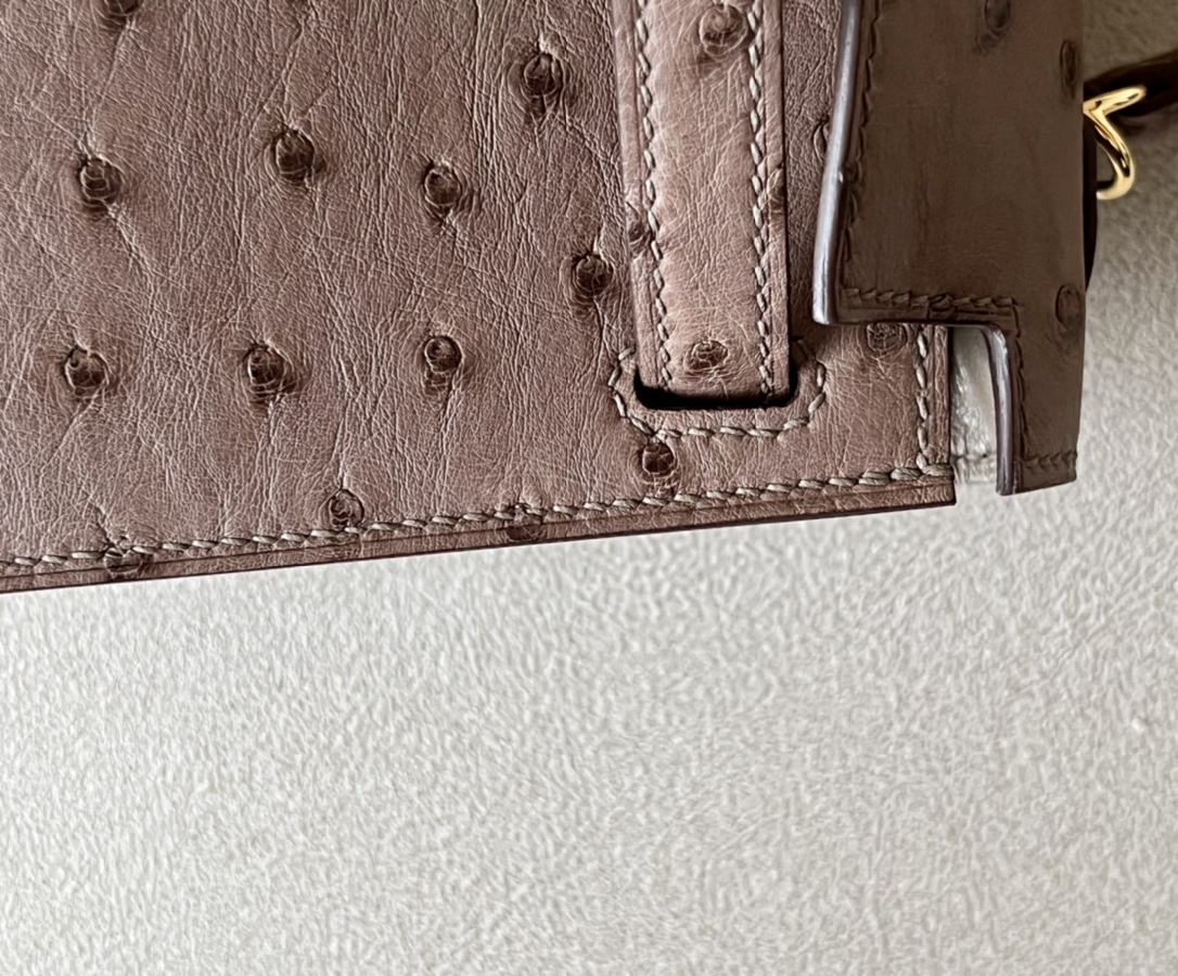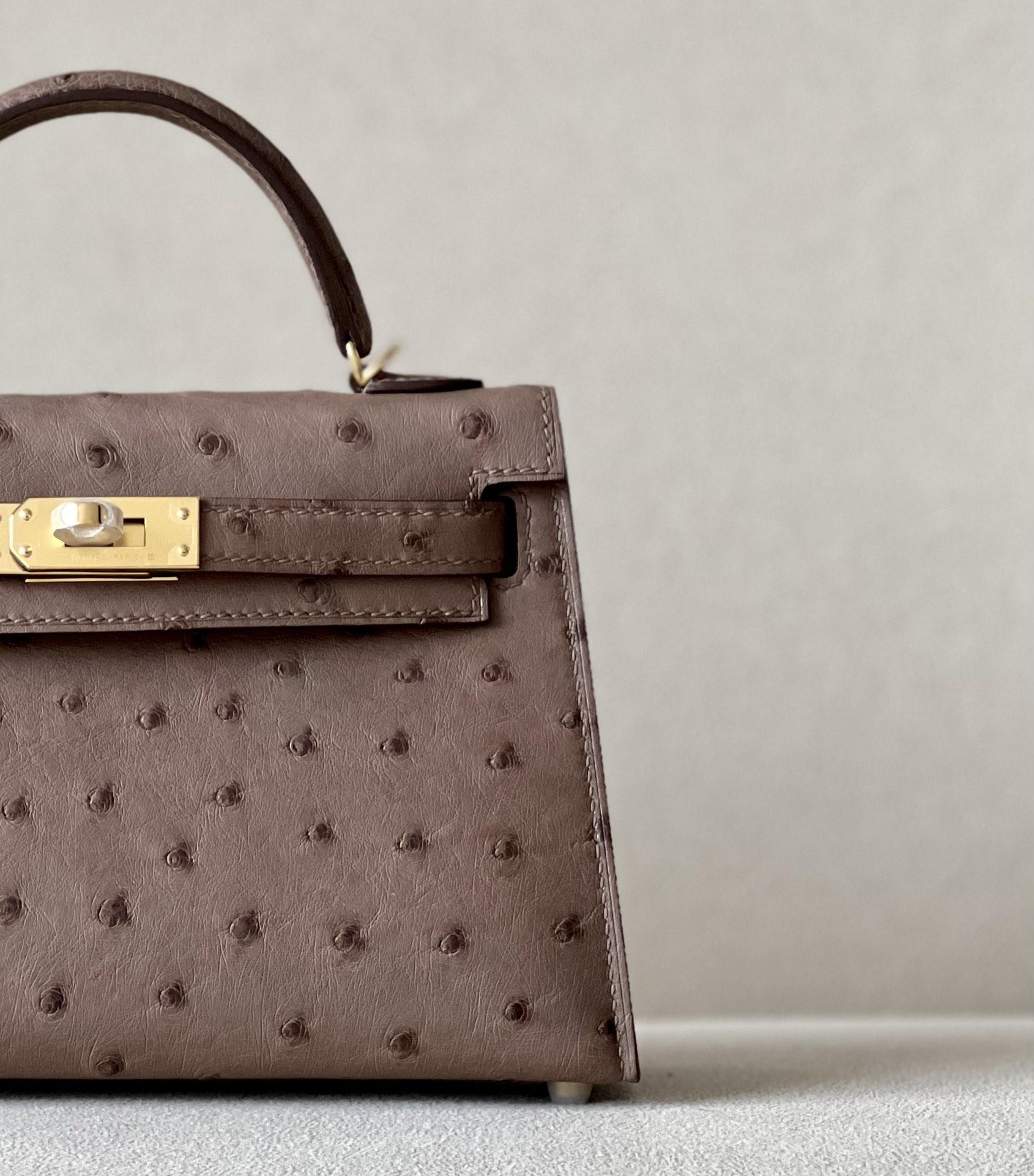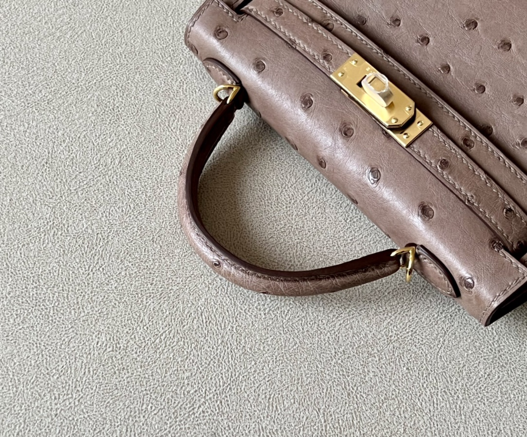 Kelly Mini Ostrich Kaki (P8) Gold Hardware