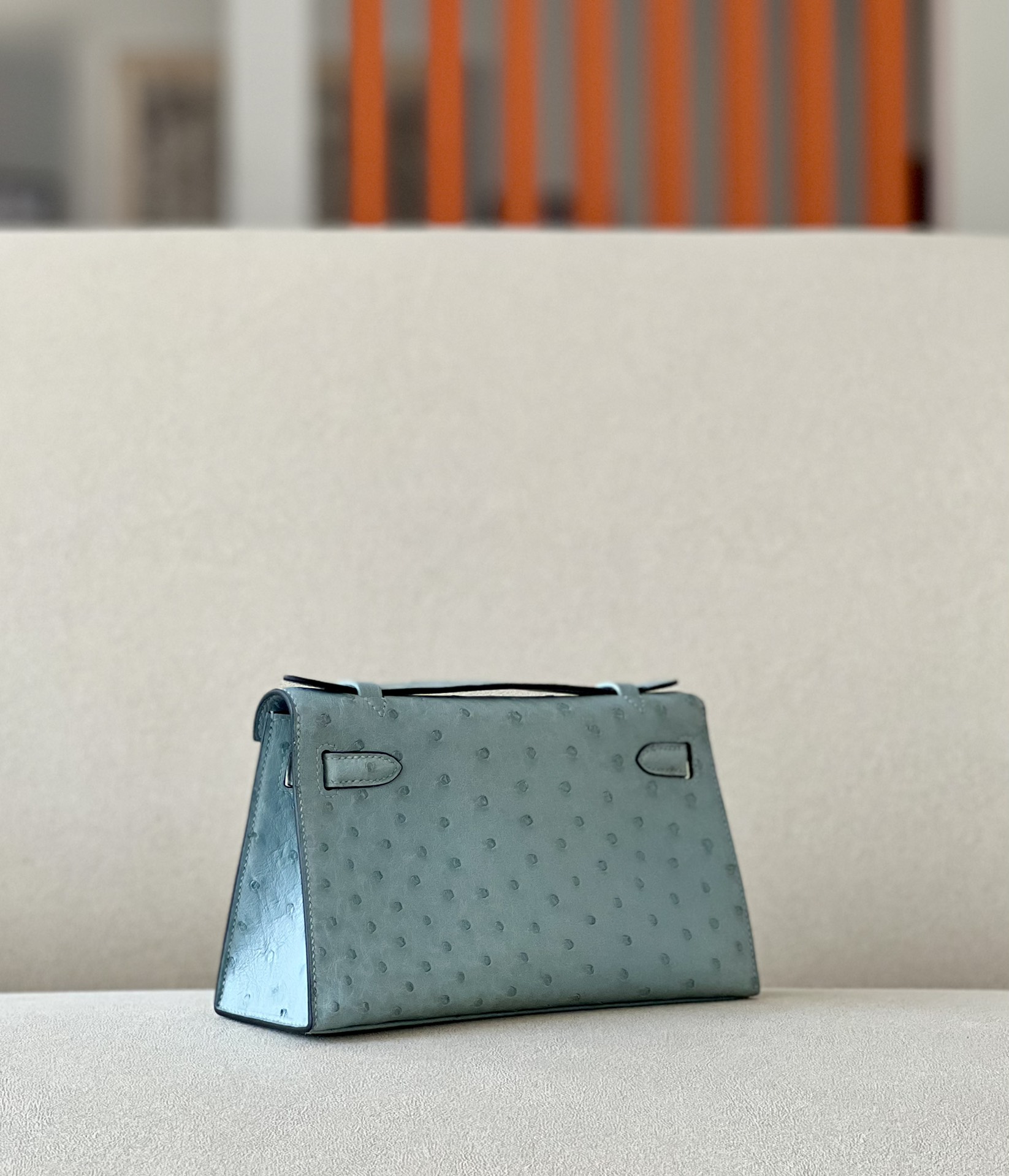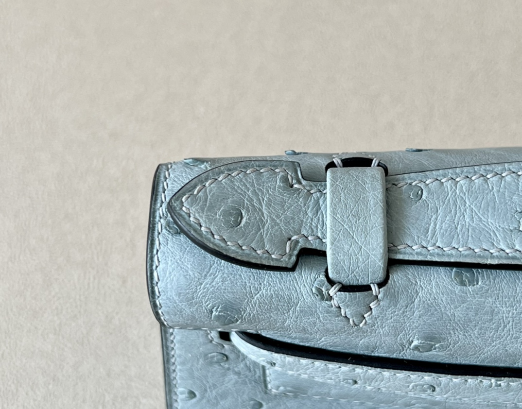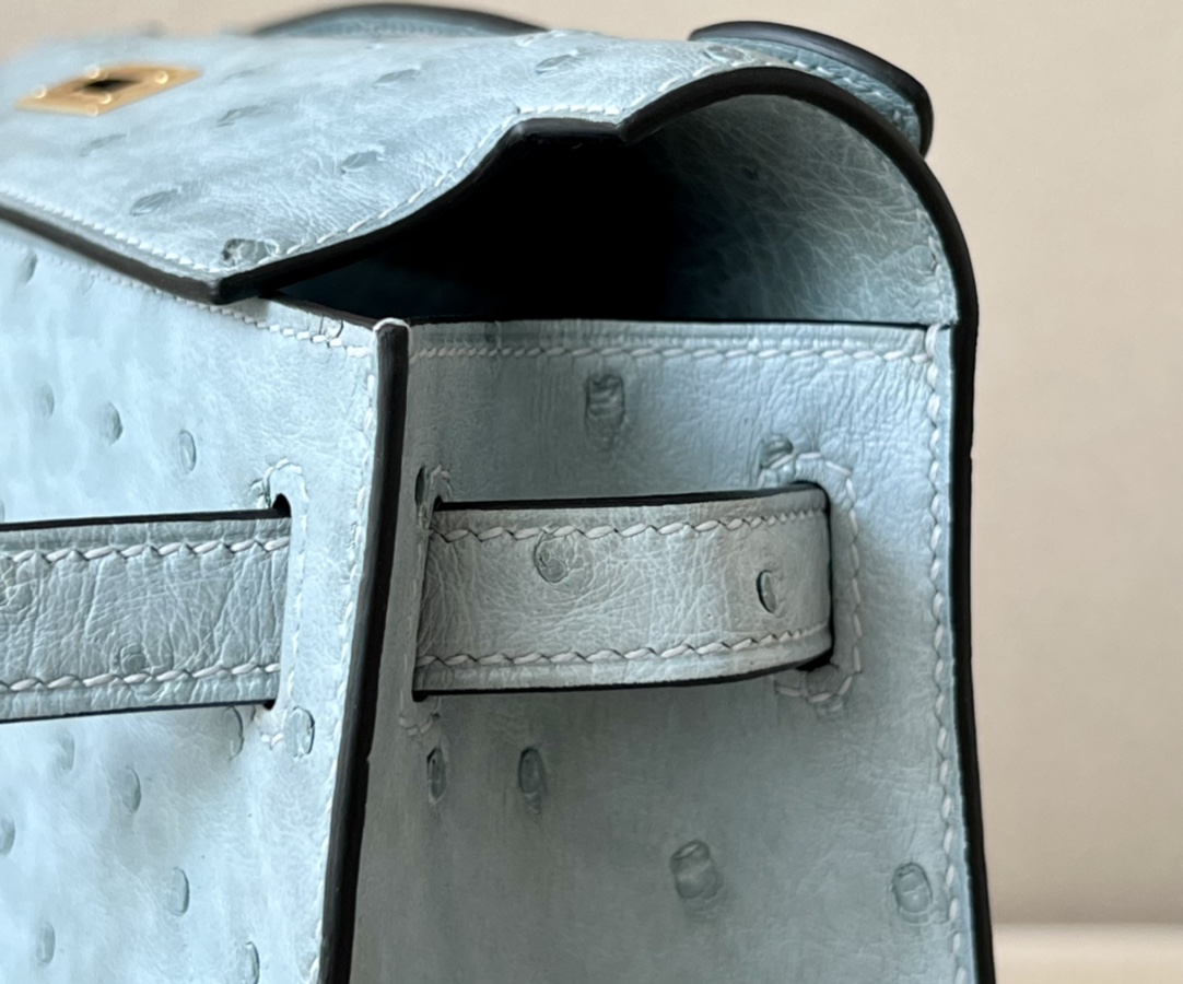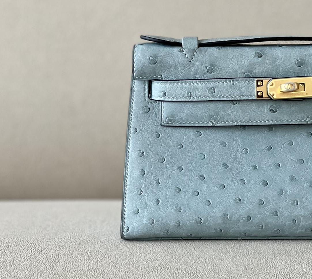 Kelly Pochette Ostrich Bleu Hydra (T7) Gold Hardware
